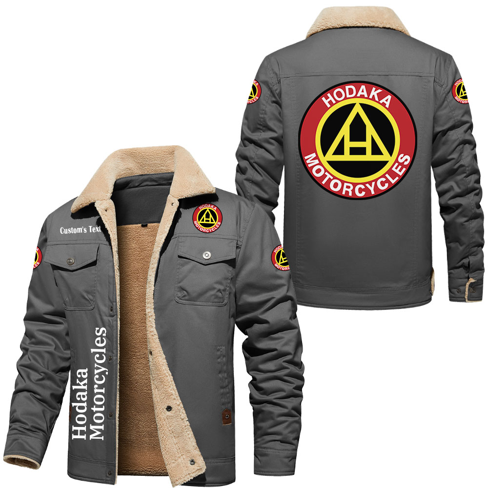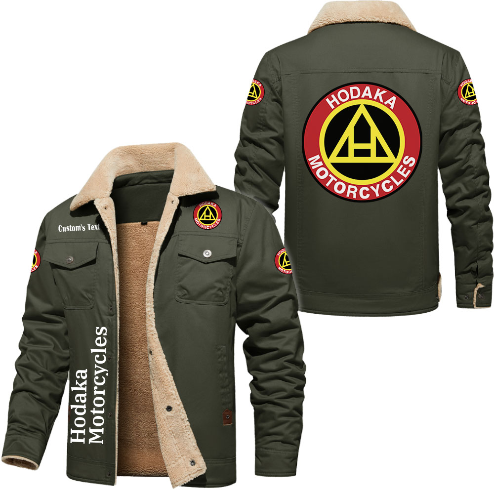 Hodaka Motorcycles Logo Custom Text Cargo Fleece Lined Cotton Jacket