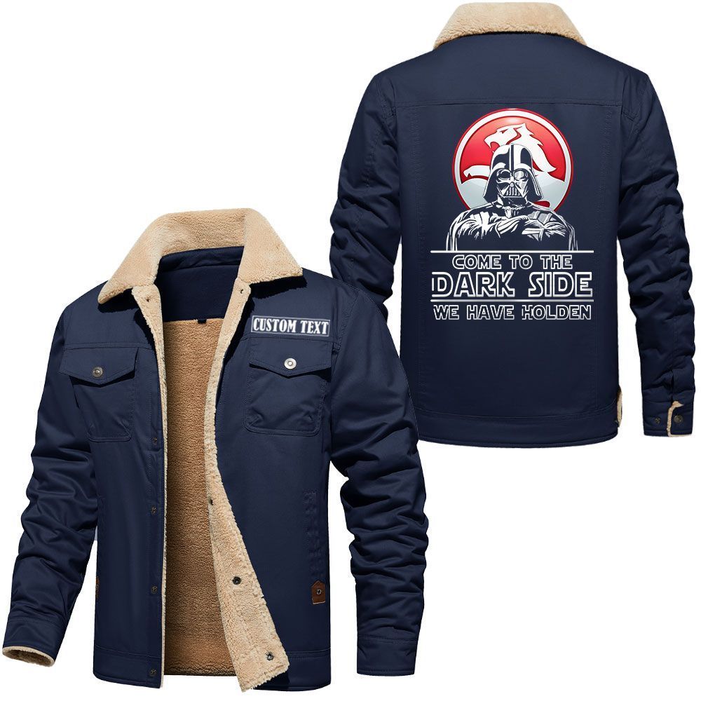 Holden Logo Custom Name Cargo Fleece Lined Cotton Jacket Personalized Outerwear with Dark Side Star Wars Design