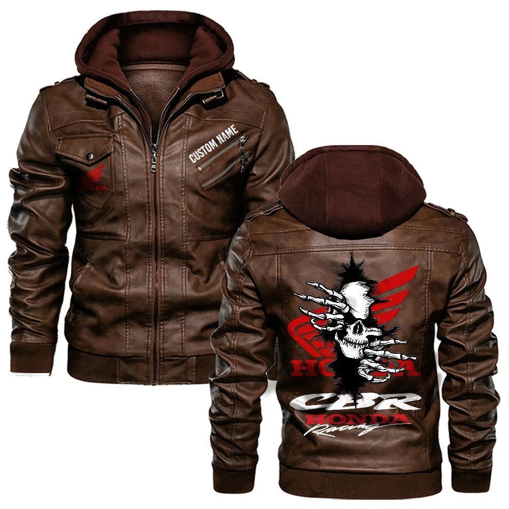 Honda CBR Custom Name Skull Biker Car Driver Personalized Hooded Leather Jacket For Men Women