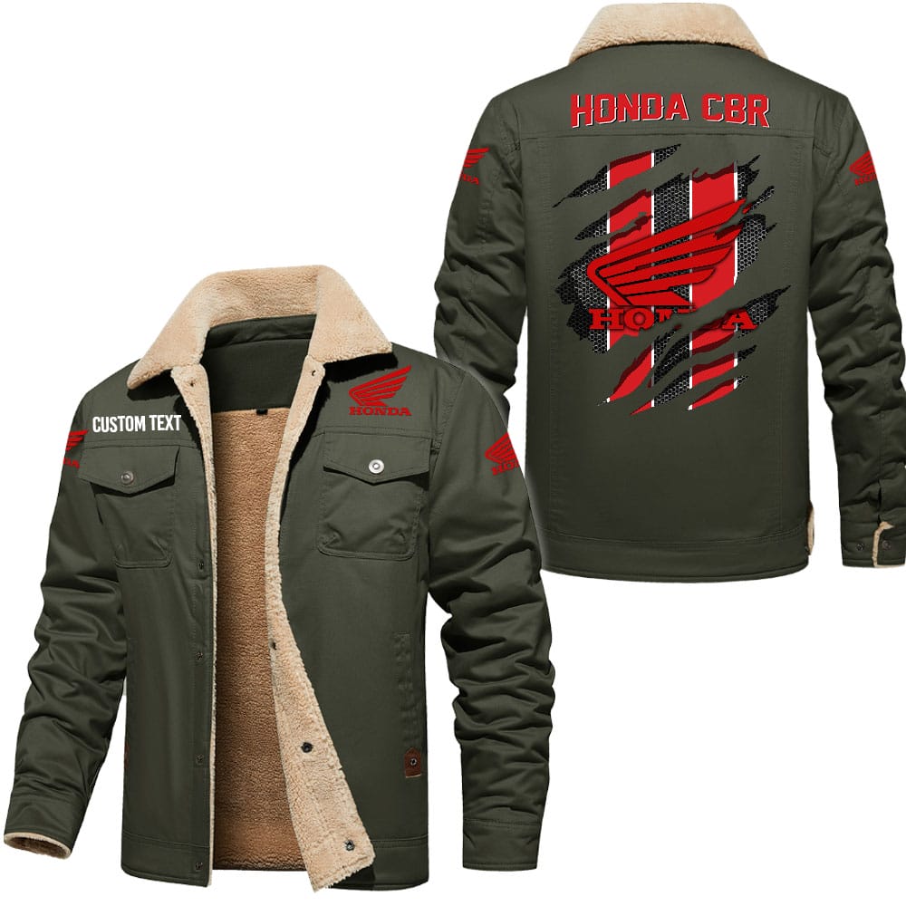 Honda CBR Logo Custom Name Cargo Fleece Lined Cotton Jacket