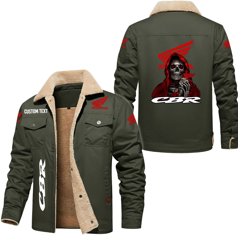 Honda CBR Skull Art Print Custom Name Cargo Fleece Lined Cotton Jacket
