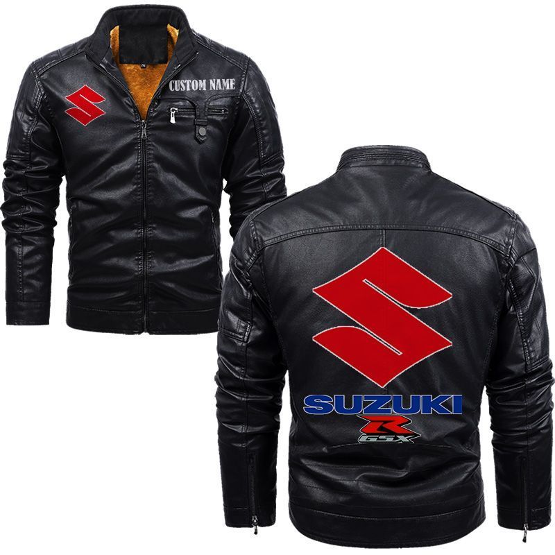 Classic Biker Style: Features a sleek slim fit with a stand-up collar, front zip closure, and stylish stitched paneling on the shoulders and sleeves.