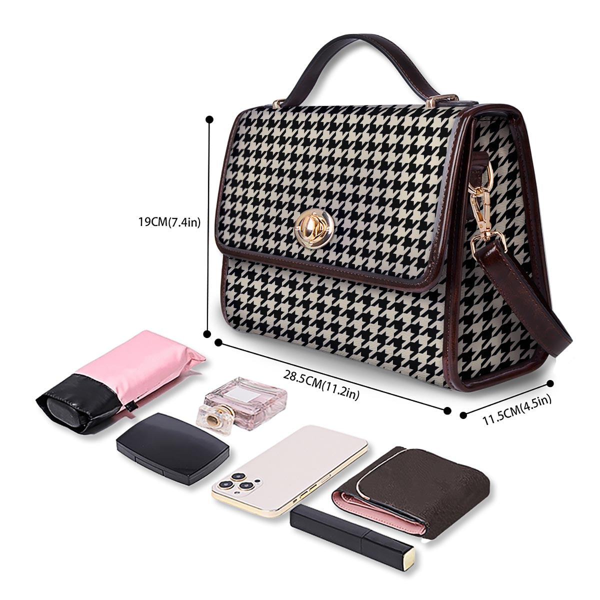 Houndstooth Black And Tan Print Pattern Women’s Satchel Bag