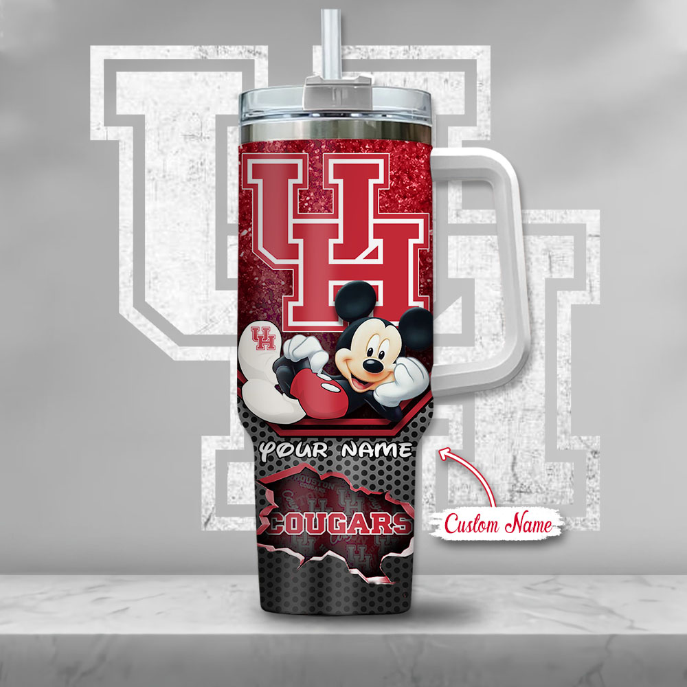 Houston Cougars Ncaa Mickey Mouse Custom Stanley Quencher 40Oz Stainless Steel Tumbler With Handle