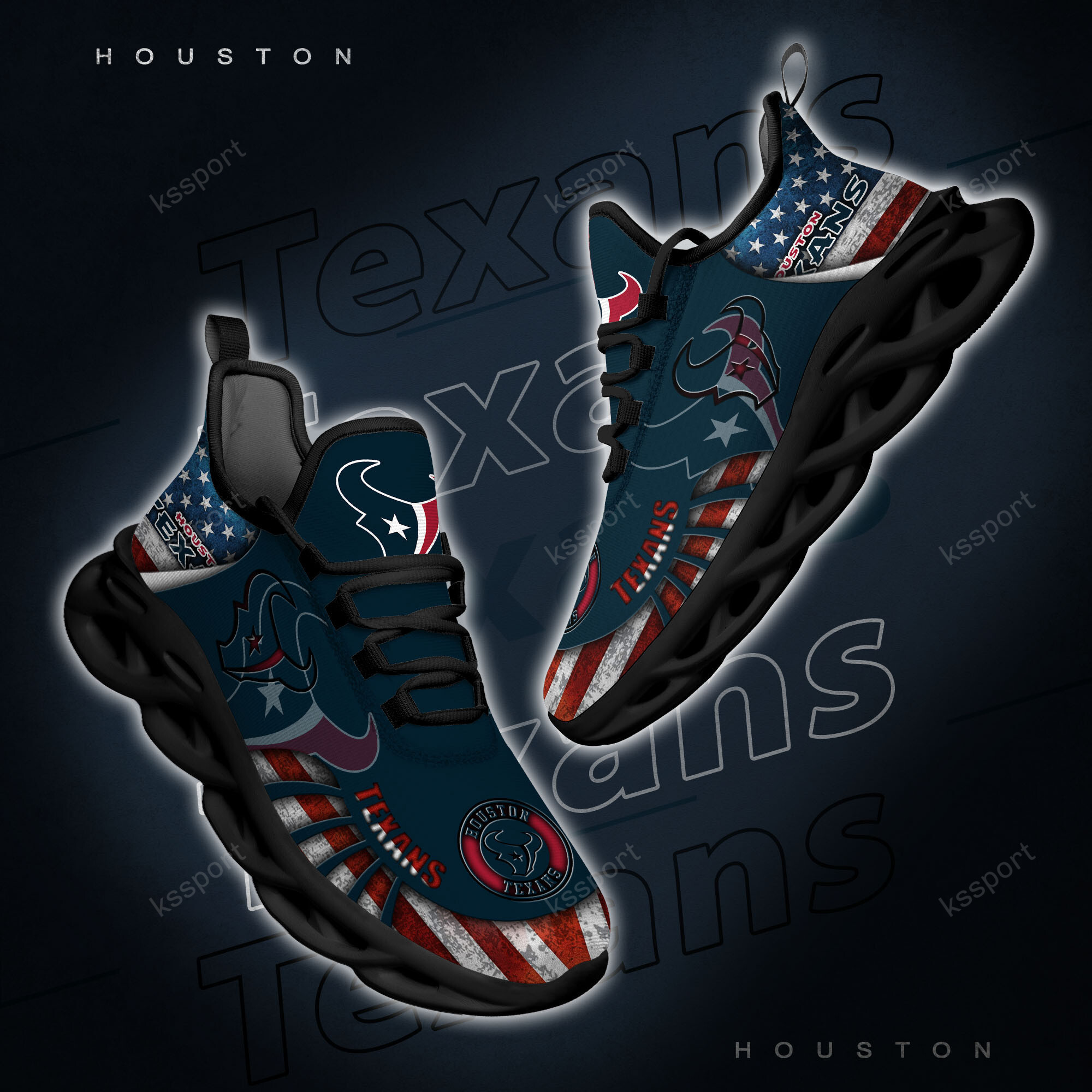 Houston Texans NFL Max Soul Shoes Sneakers Printed White And Black Sole For Men And Women