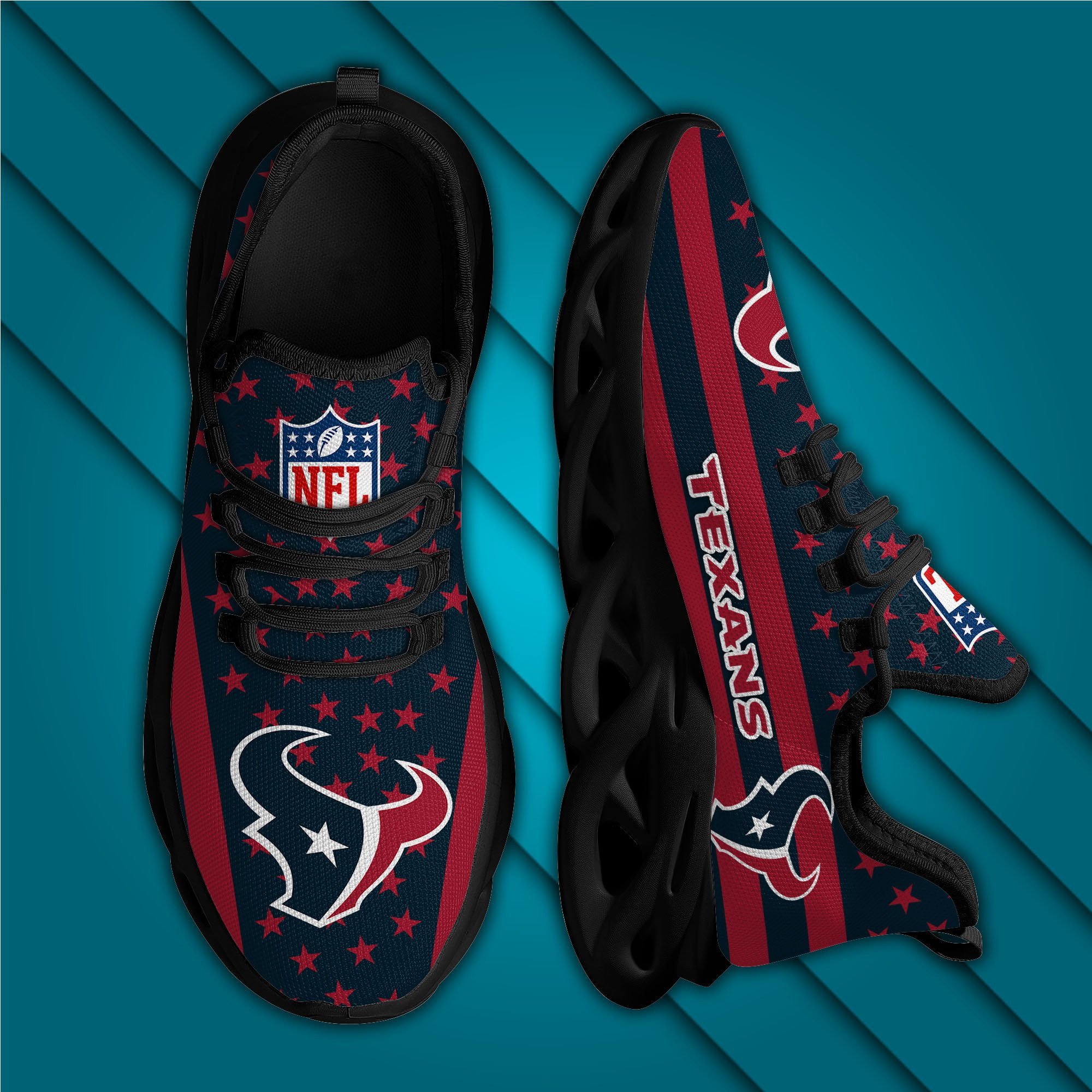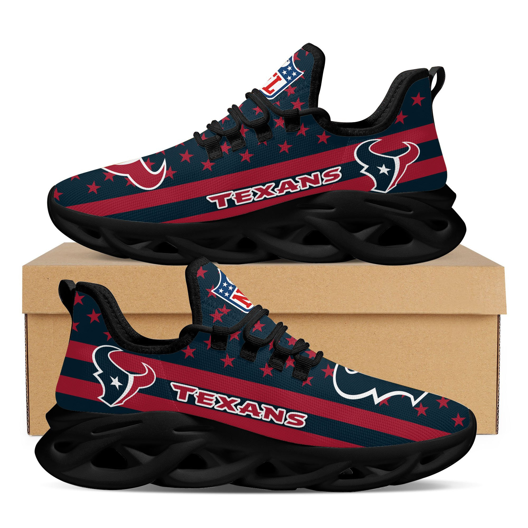 Houston Texans NFL Max Soul Shoes Sneakers Printed White And Black Sole For Men And Women