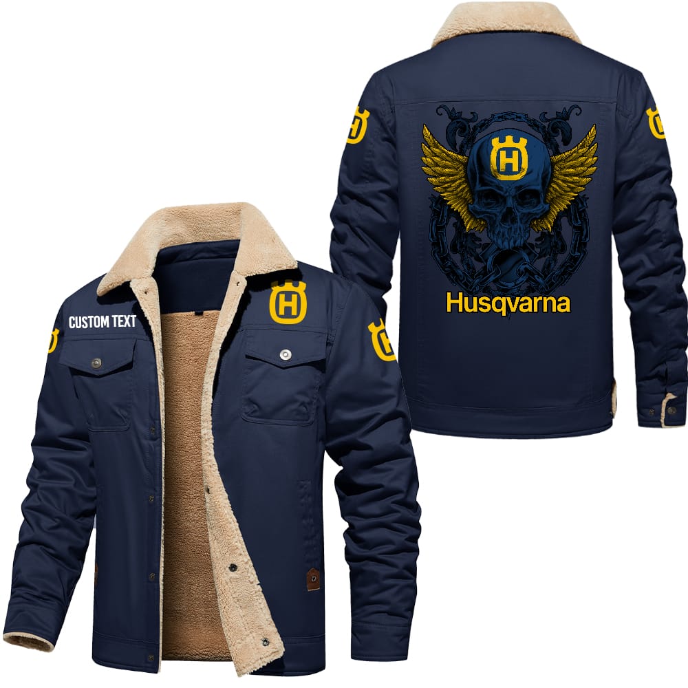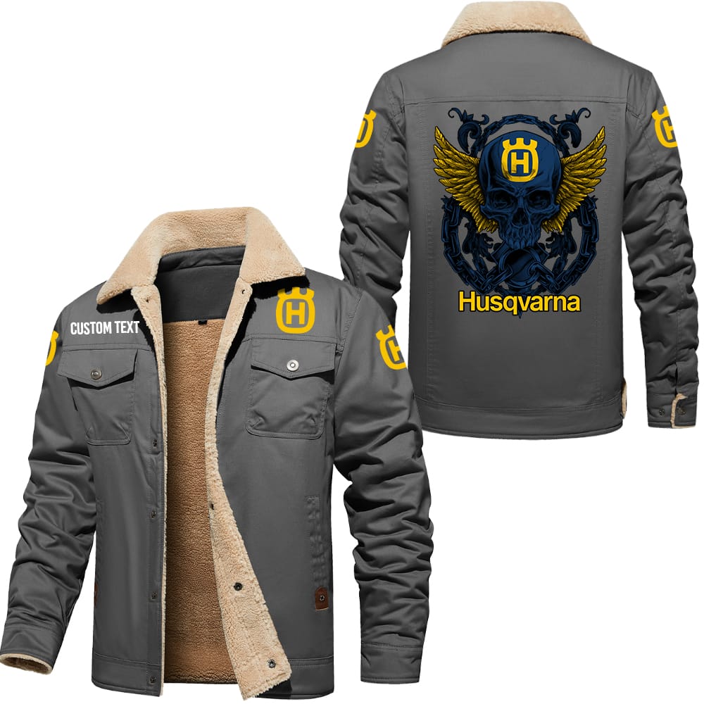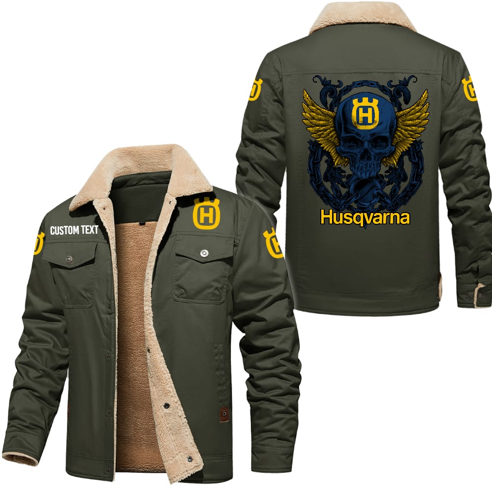 Husqvarna Custom Name Skull Design Cargo Fleece Lined Cotton Jacket