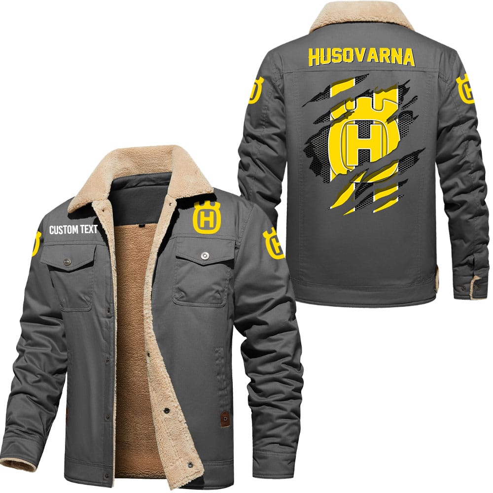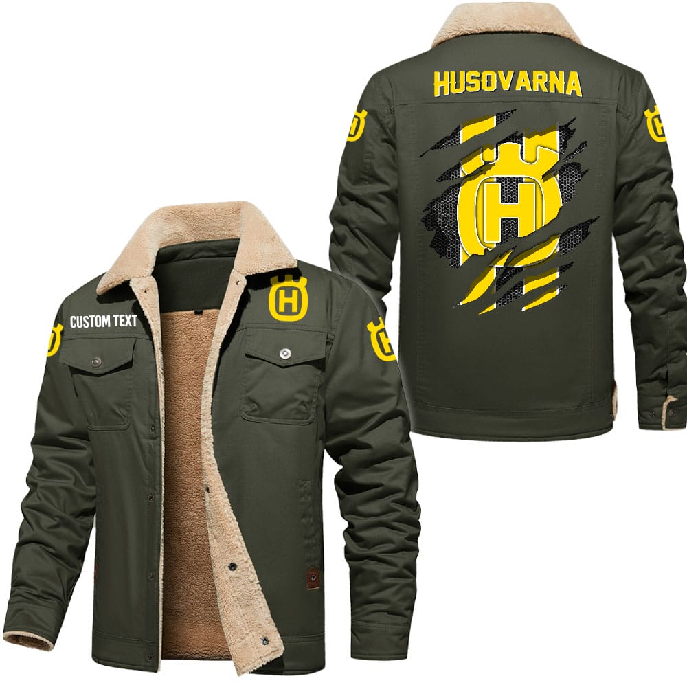 Husqvarna Logo Custom Name Cargo Fleece Lined Cotton Jacket