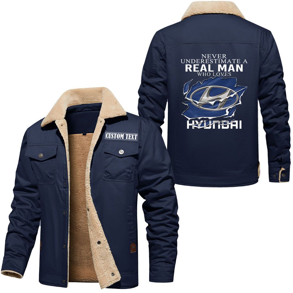 Hyundai Logo Custom Name Cargo Fleece Lined Cotton Jacket A Real Man Who Loves Personalized Outerwear