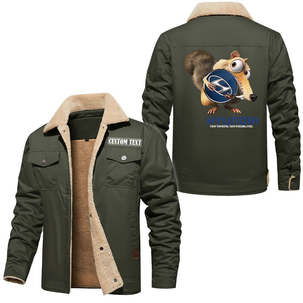 Hyundai Logo Custom Name Cargo Fleece Lined Cotton Jacket Scrat Ice Age Design Personalized Outerwear