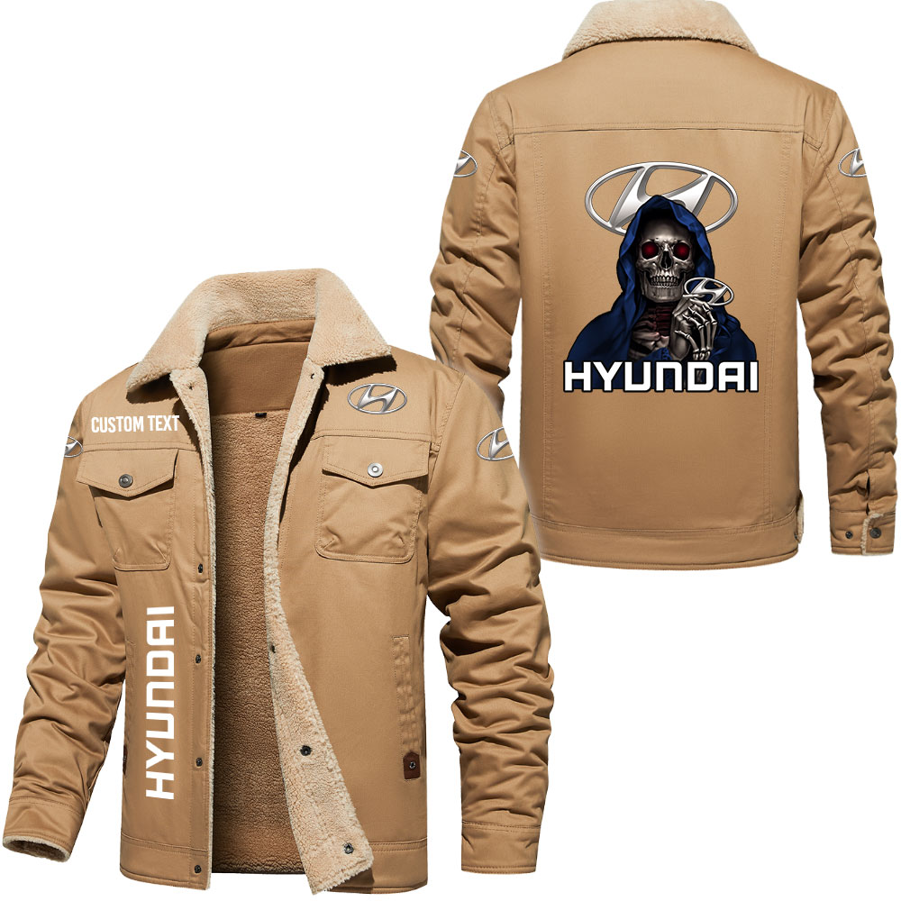 Hyundai Skull Art Print Custom Name Cargo Fleece Lined Cotton Jacket