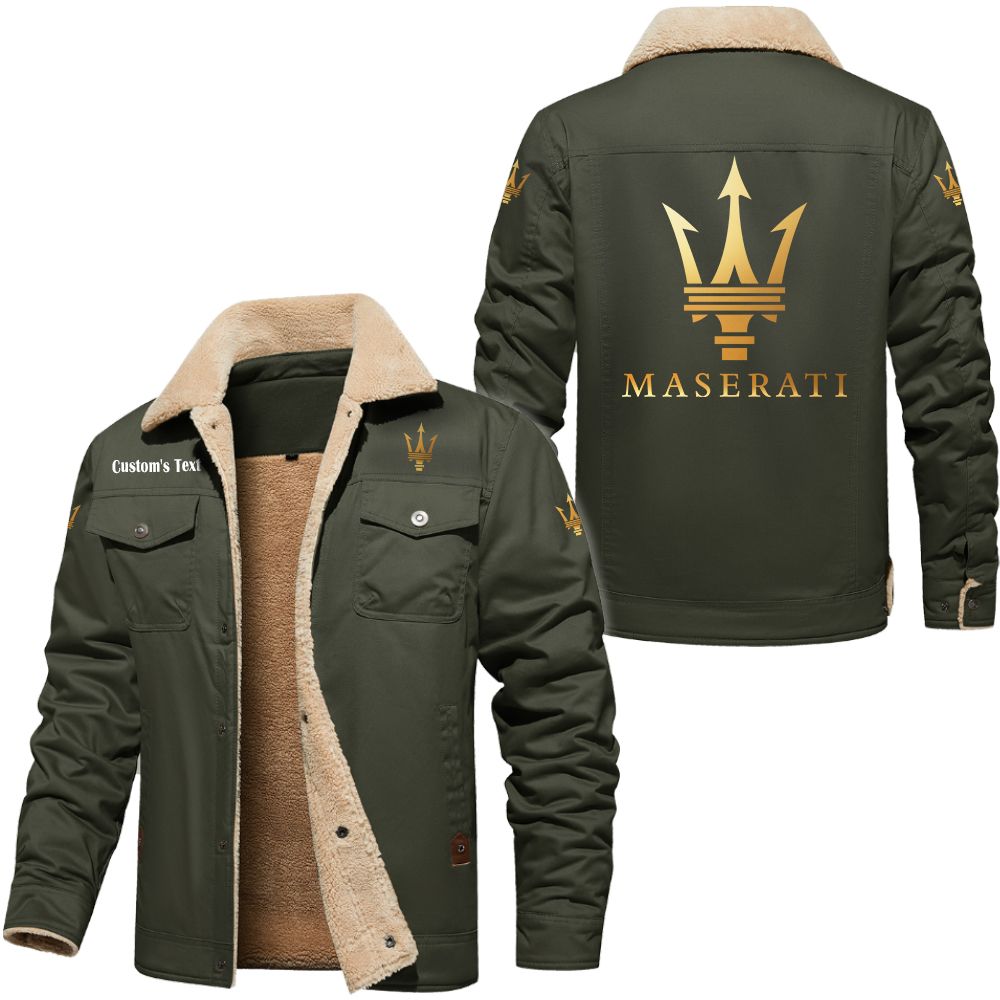 indian Golden Logo Custom Cargo Fleece Lined Cotton Jacket Army Green