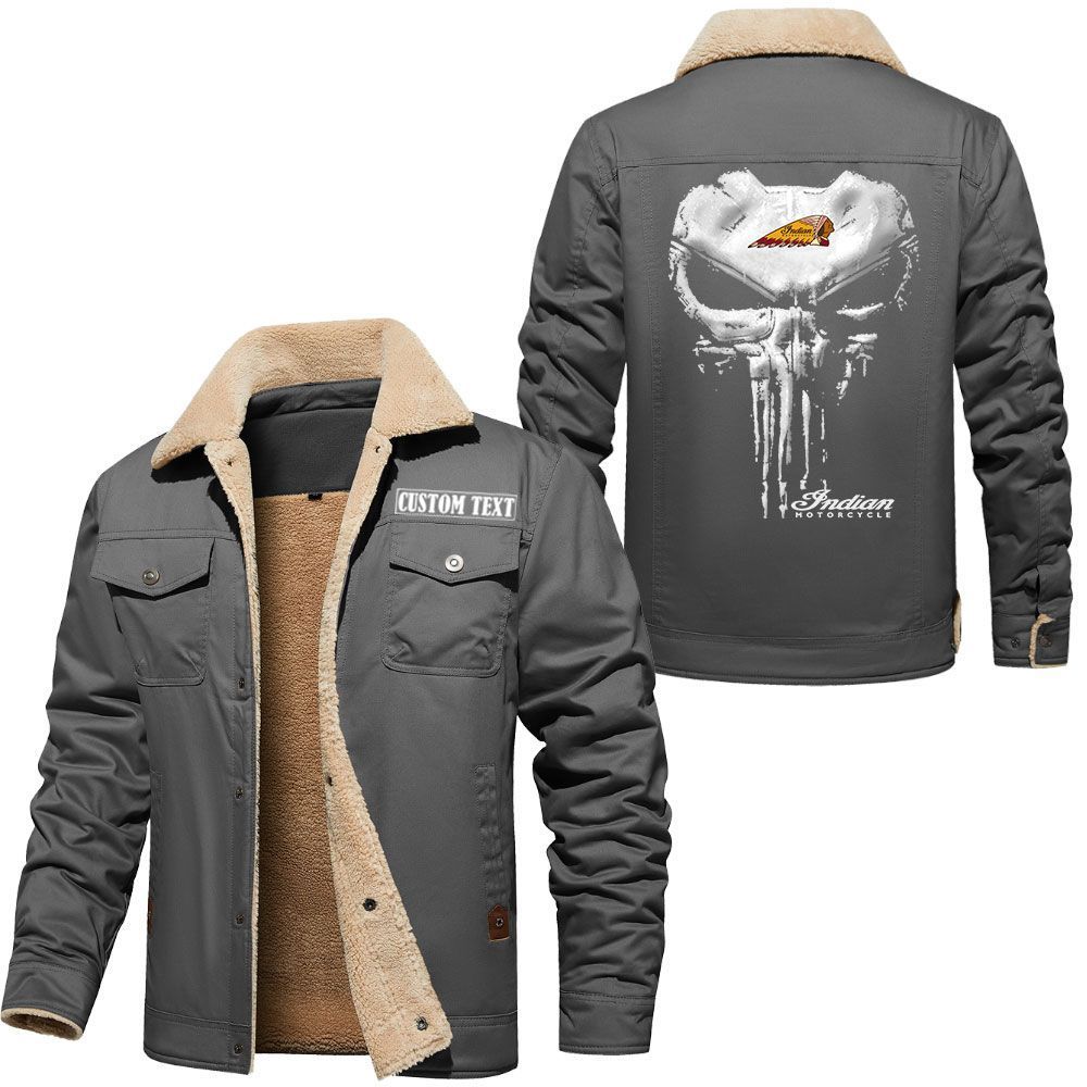 Indian Logo Custom Name Cargo Fleece Lined Cotton Jacket Personalized Outerwear with Punisher Skull Design