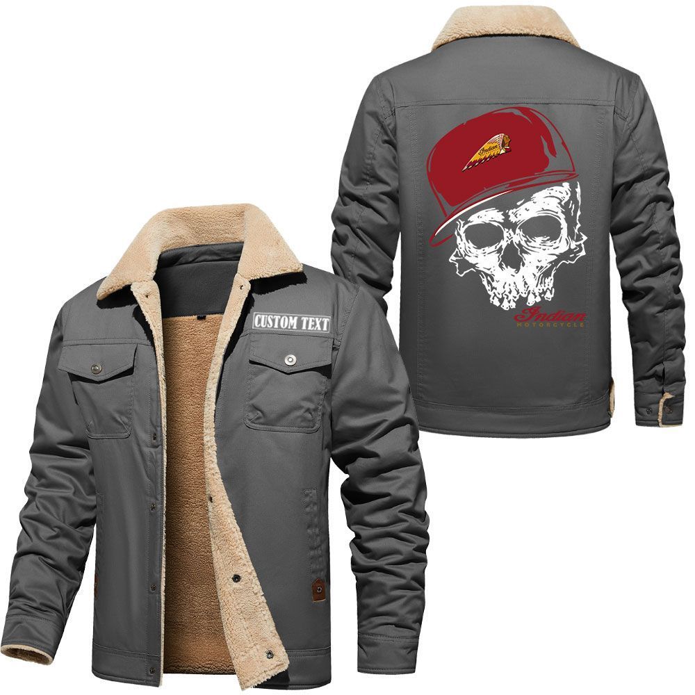 Indian Logo Custom Name Cargo Fleece Lined Cotton Jacket Personalized Outerwear with Skull Design