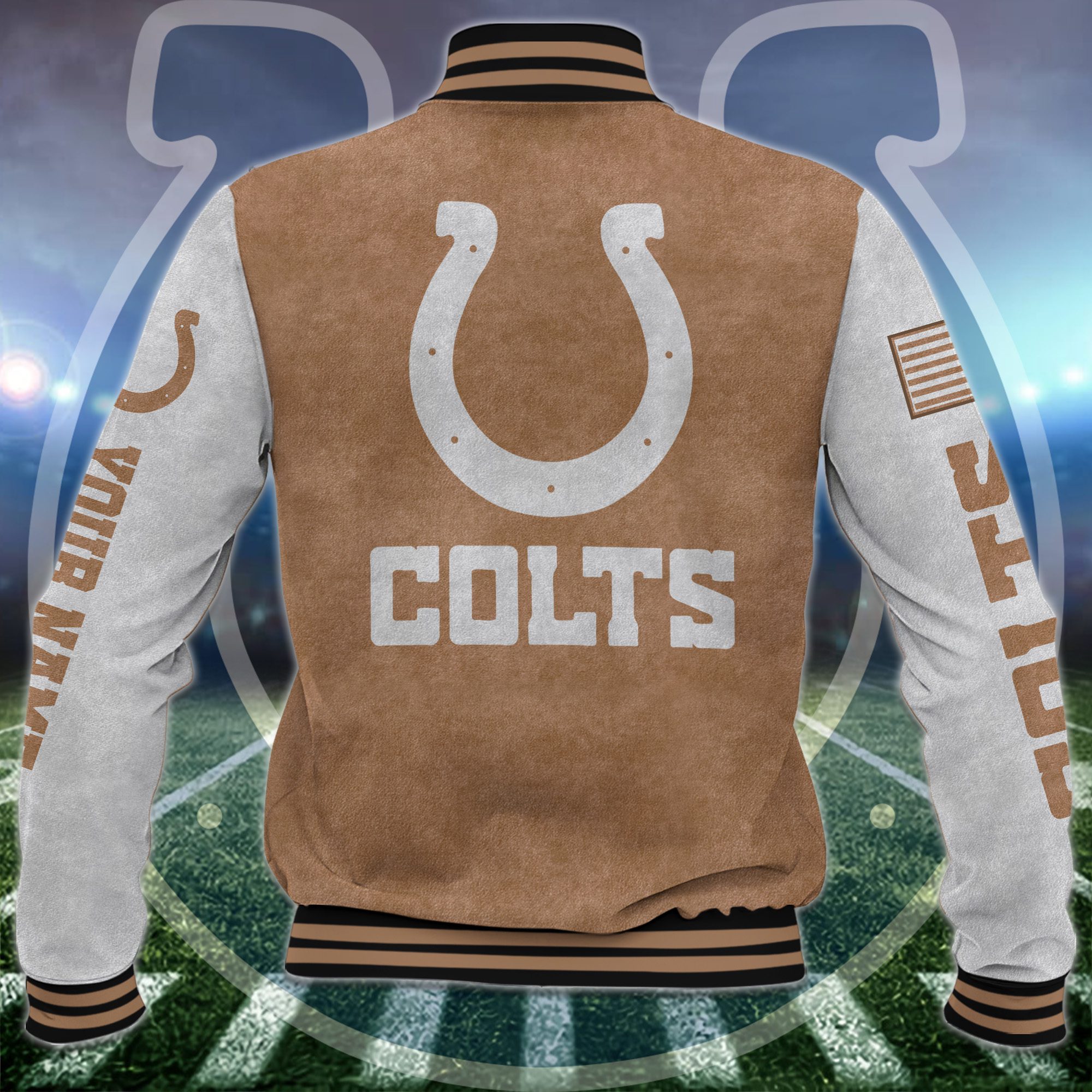Indianapolis Colts Brown Baseball Jacket Custom Name