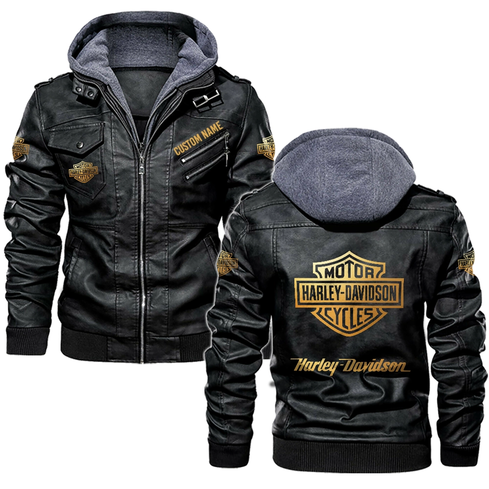 Infiniti Golden Logo Custom Hooded Leather Jacket Black