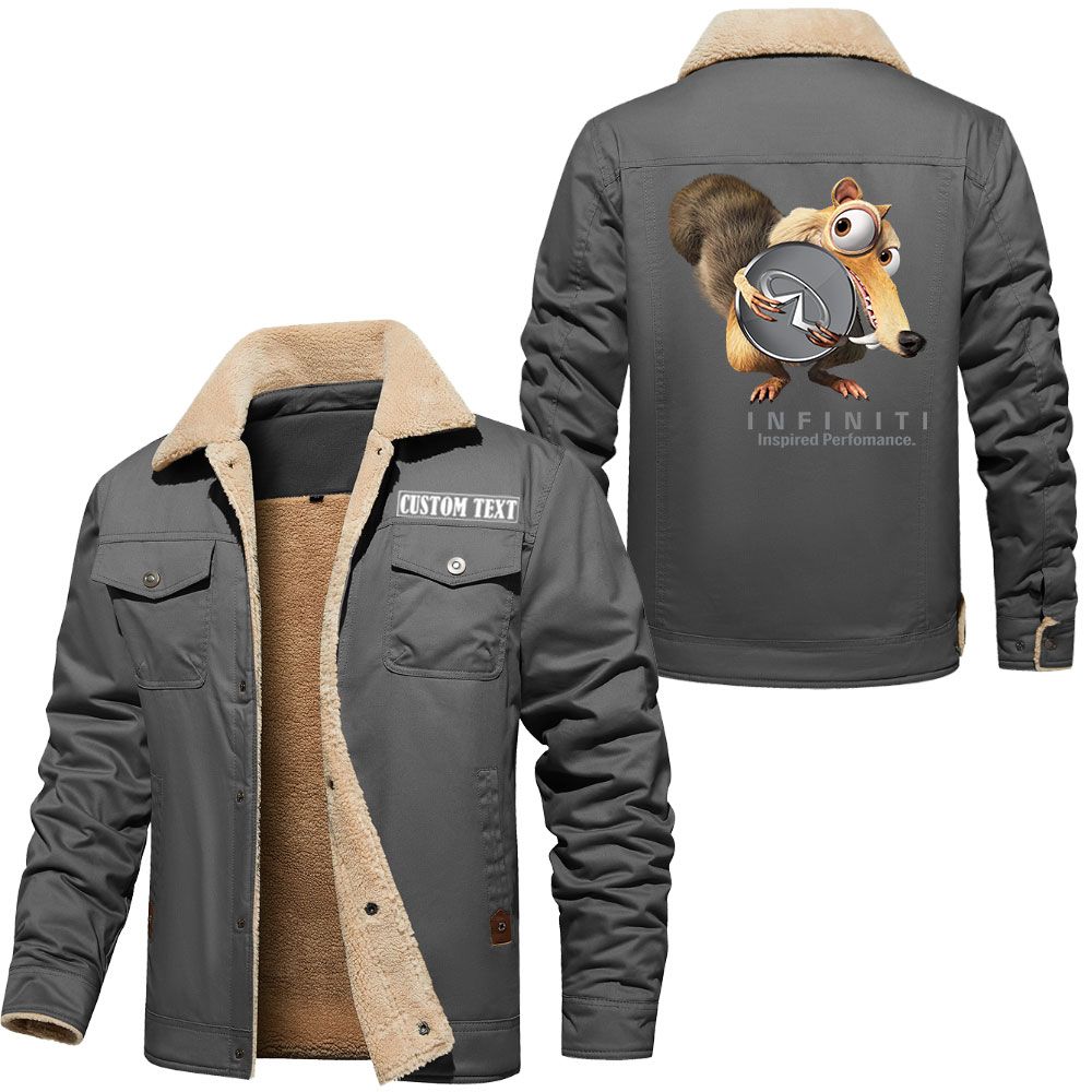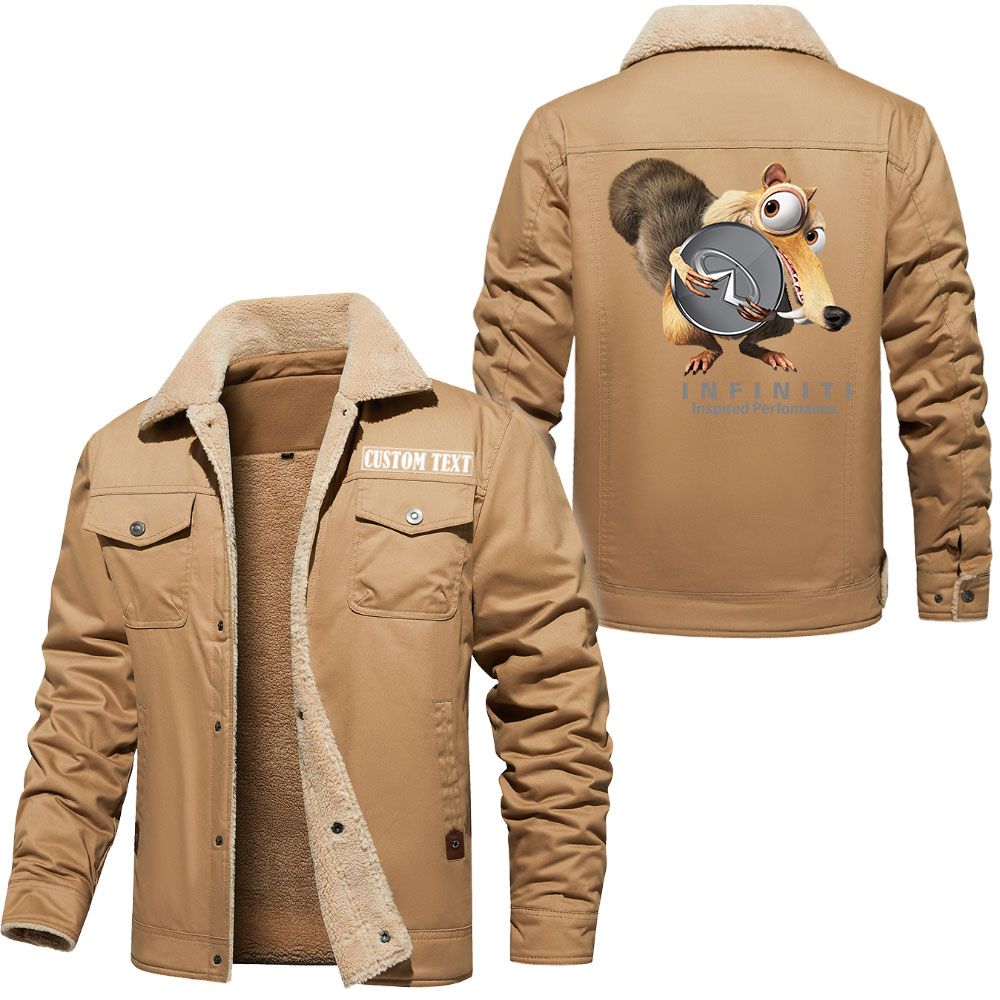 Infiniti Logo Custom Name Cargo Fleece Lined Cotton Jacket Scrat Ice Age Design Personalized Outerwear