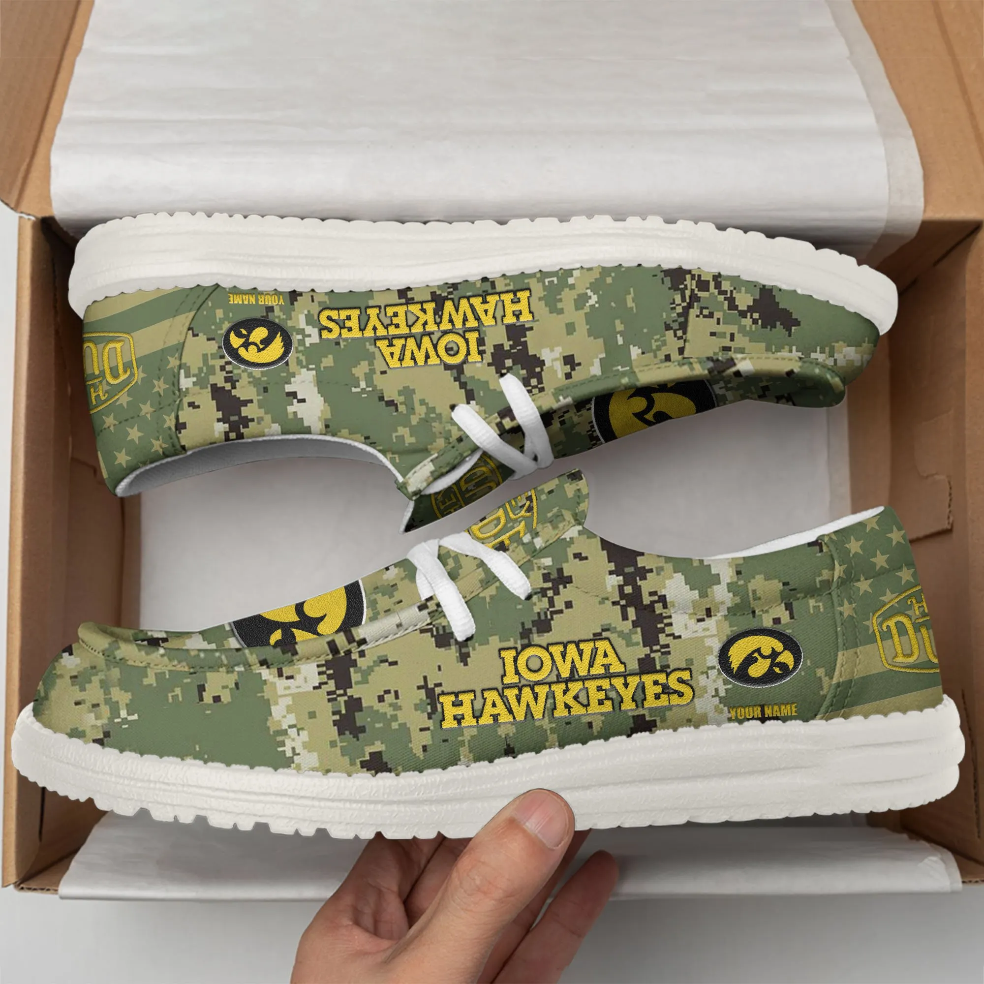 Iowa Hawkeyes 3D Print Dude Shoes Camo Green Best Gift For Sport Fan