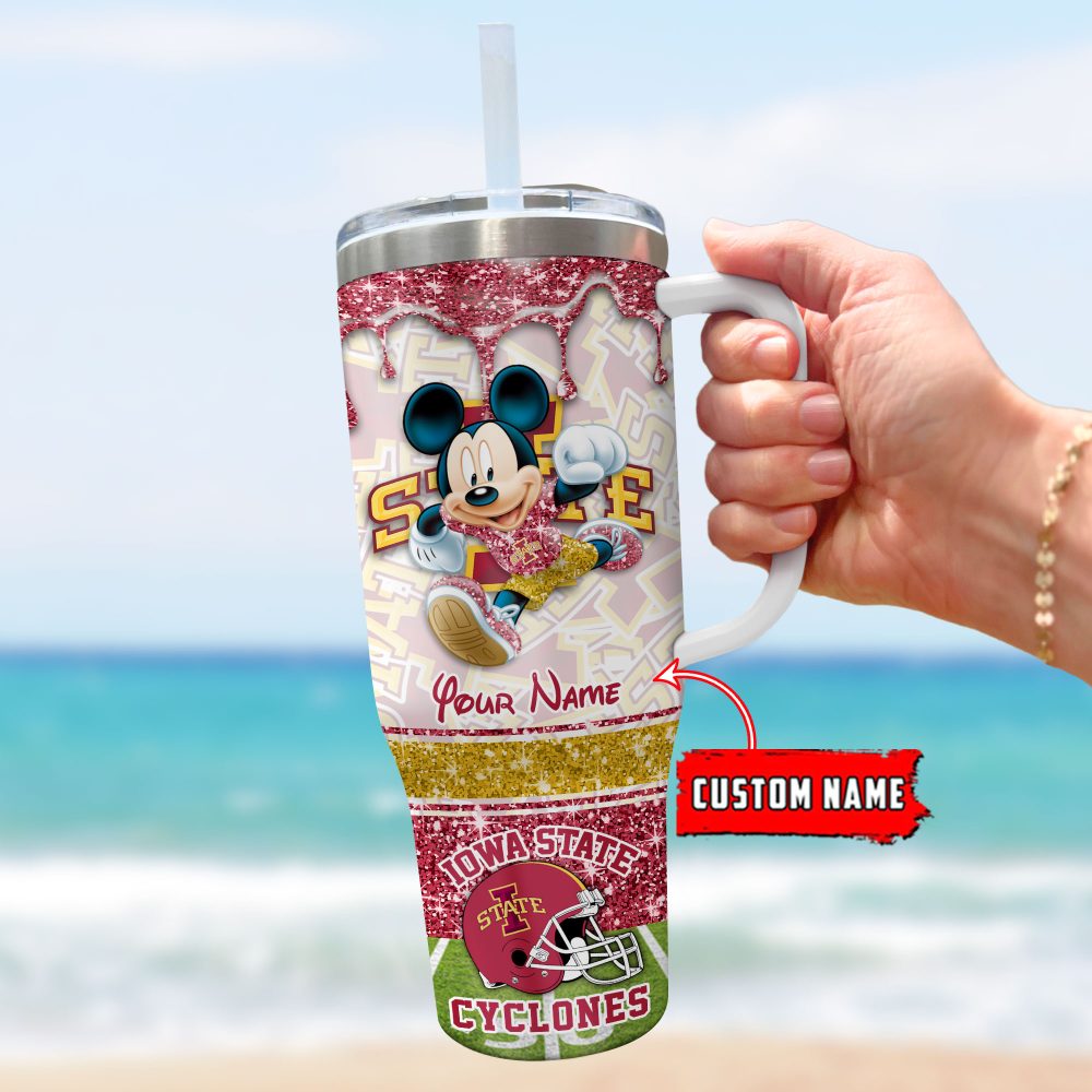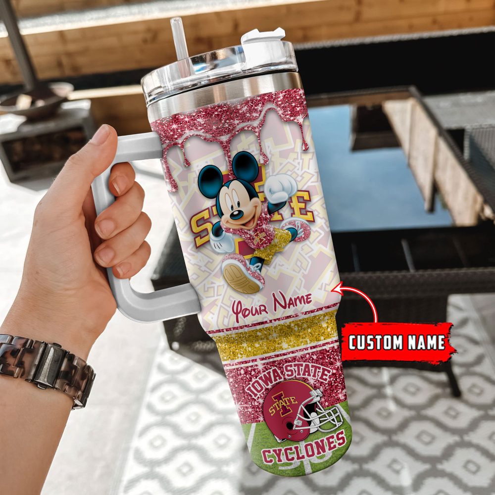 Iowa State Cyclones Ncaa Mickey Mouse Glitter Custom Stanley Quencher 40Oz Stainless Steel Tumbler With Handle