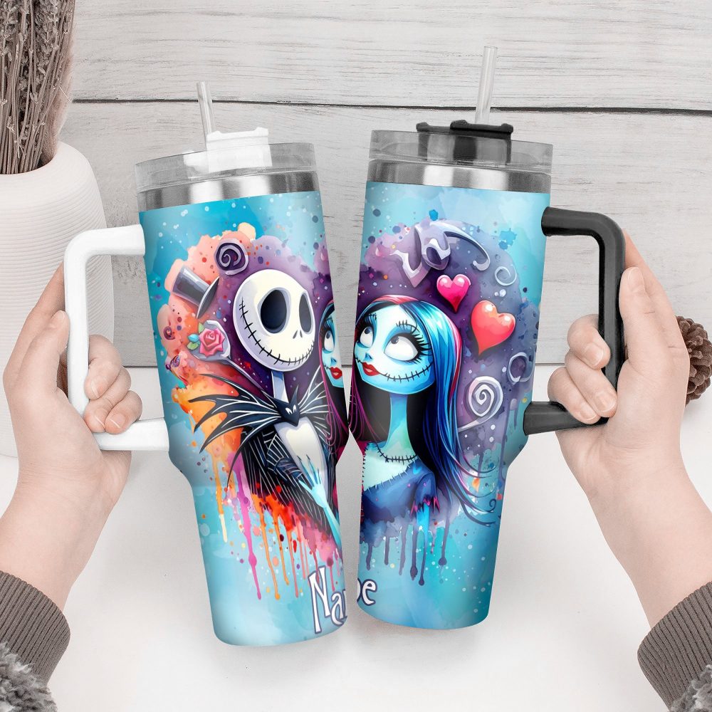 Jack And Sally Movies Custom Stanley Quencher 40Oz Stainless Steel Tumbler With Handle