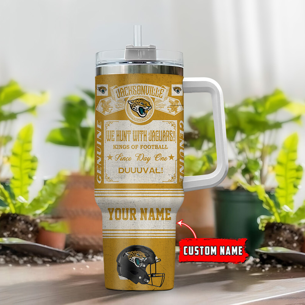 Jacksonville Jaguars Nfl Vintage Kings Of Football Custom Stanley Quencher 40Oz Stainless Steel Tumbler With Handle