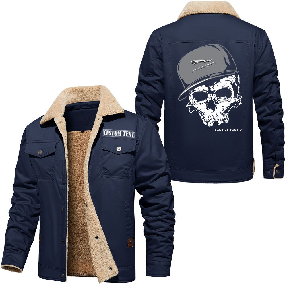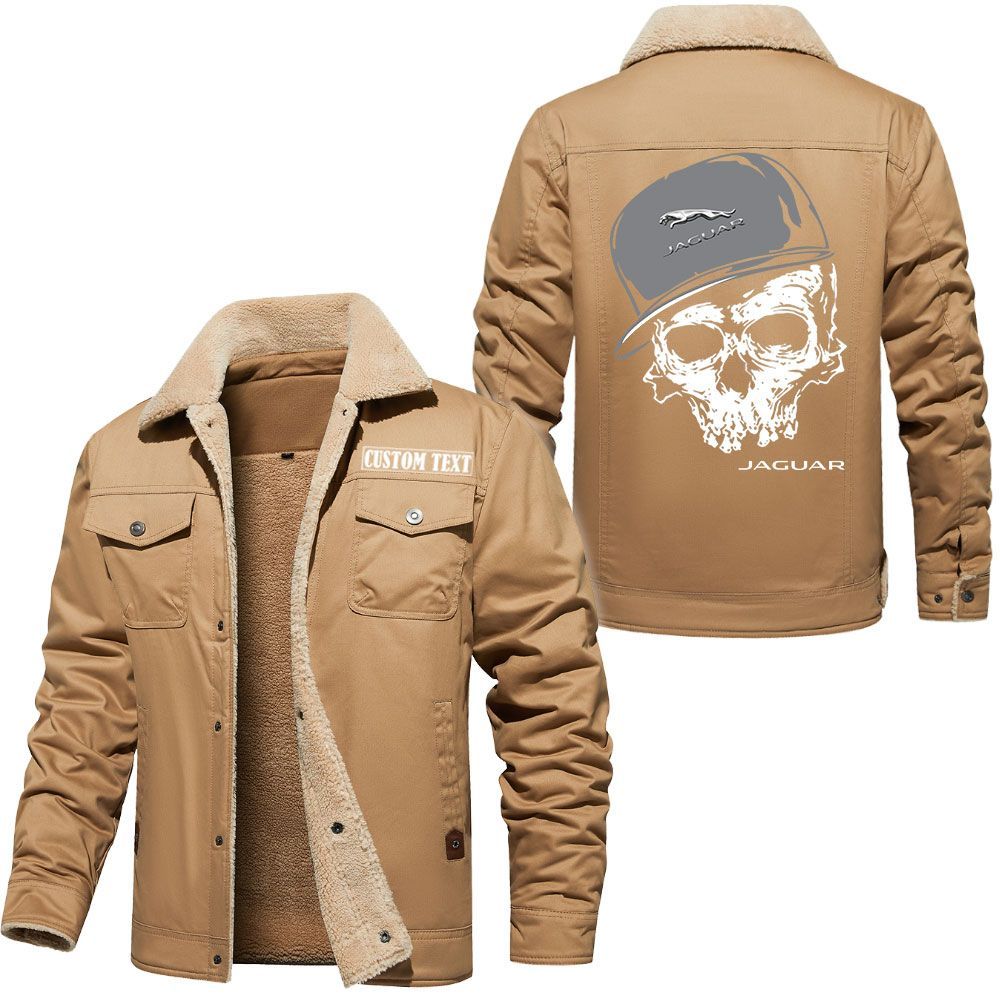 Jaguar Cars Logo Custom Name Cargo Fleece Lined Cotton Jacket Personalized Outerwear with Skull Design