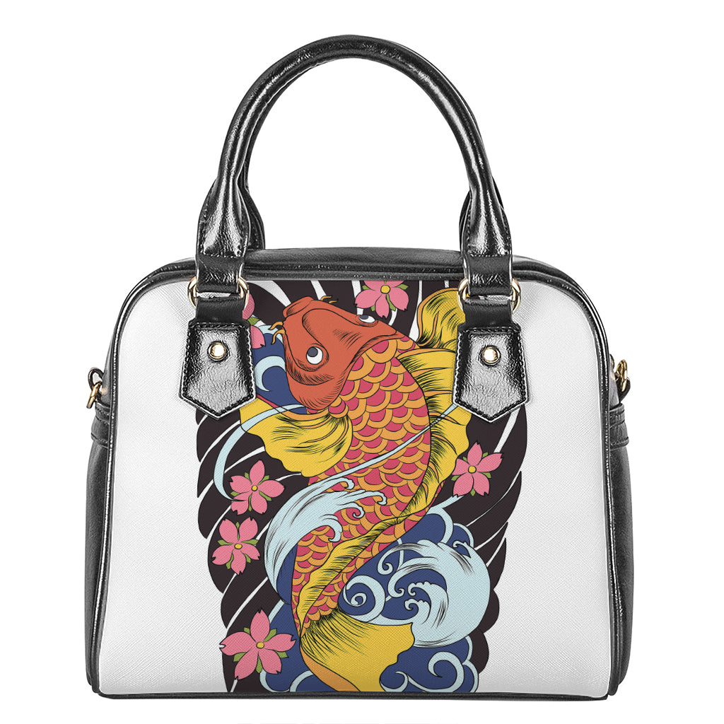 Japanese Koi And Flower Tattoo Print Shoulder Handbag