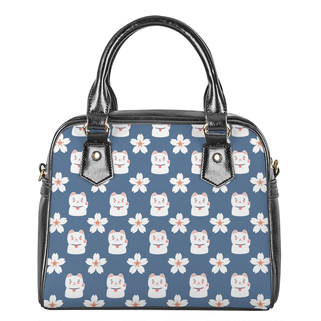 Japanese White Tiger Pattern Print Shoulder Handbag