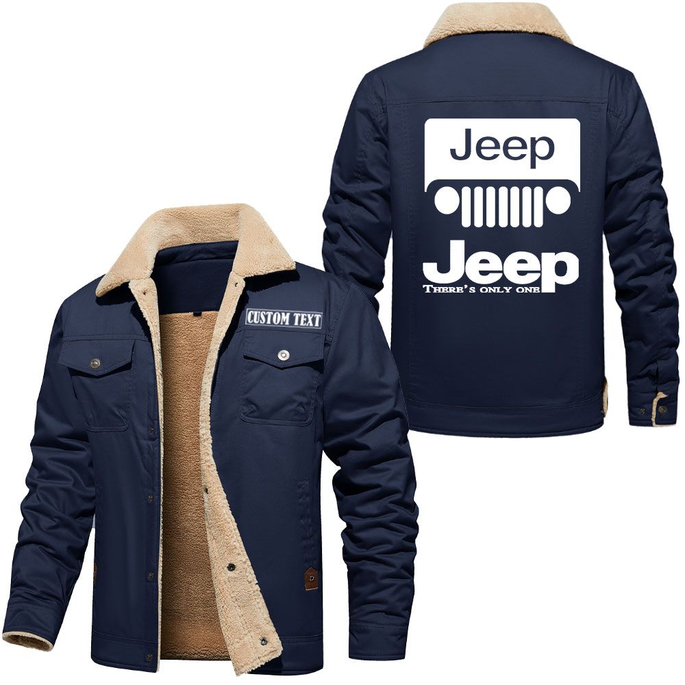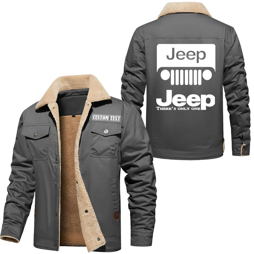 Jeep Logo Custom Name Cargo Fleece Lined Cotton Jacket Stylish Warm Personalized Outerwear