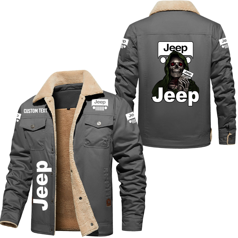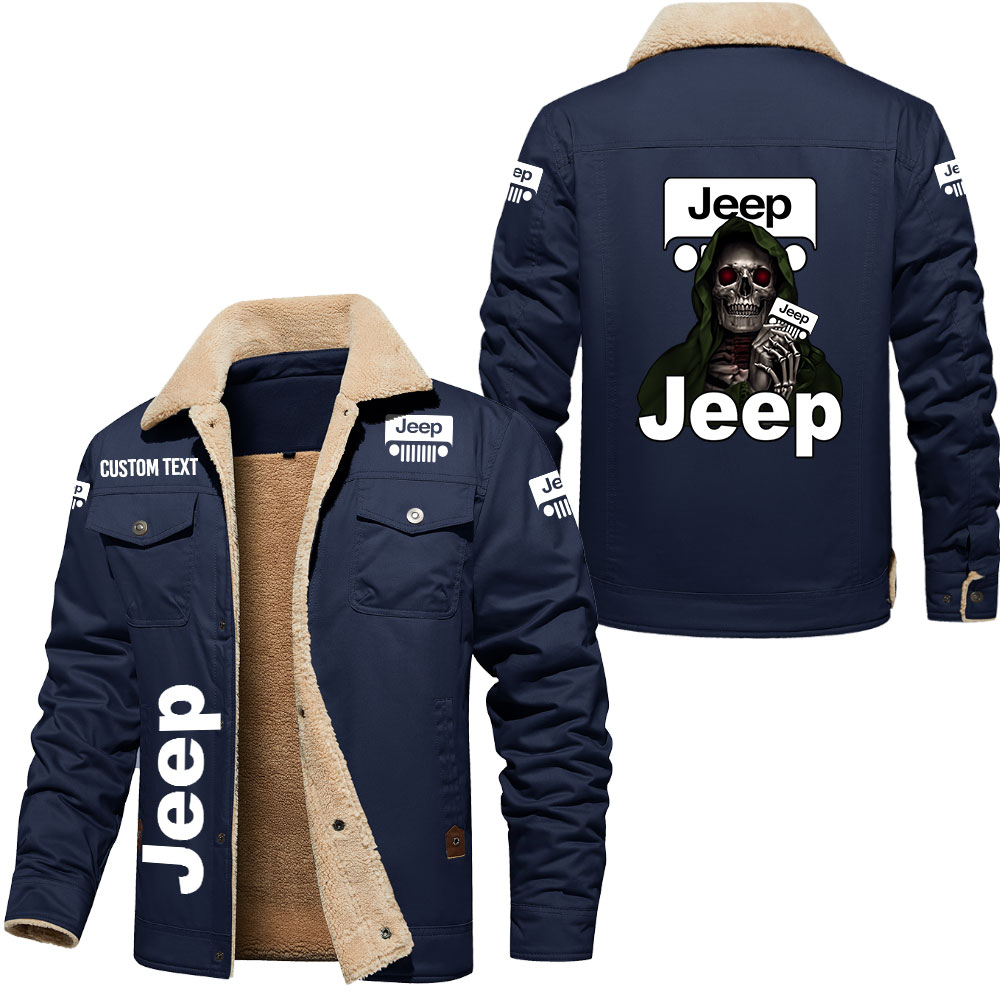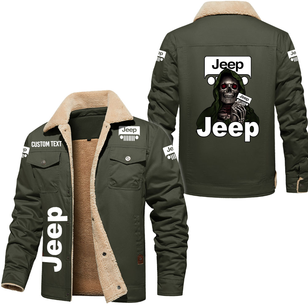 Jeep Skull Art Print Custom Name Cargo Fleece Lined Cotton Jacket