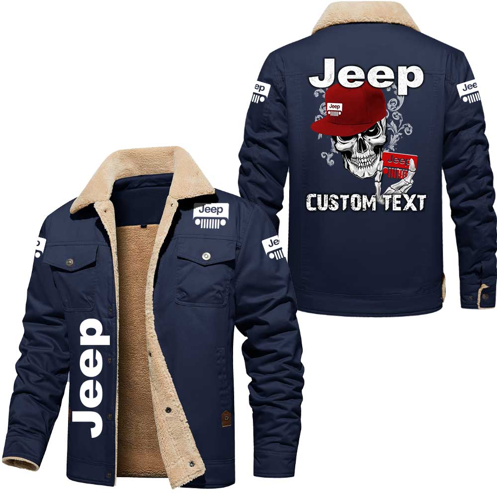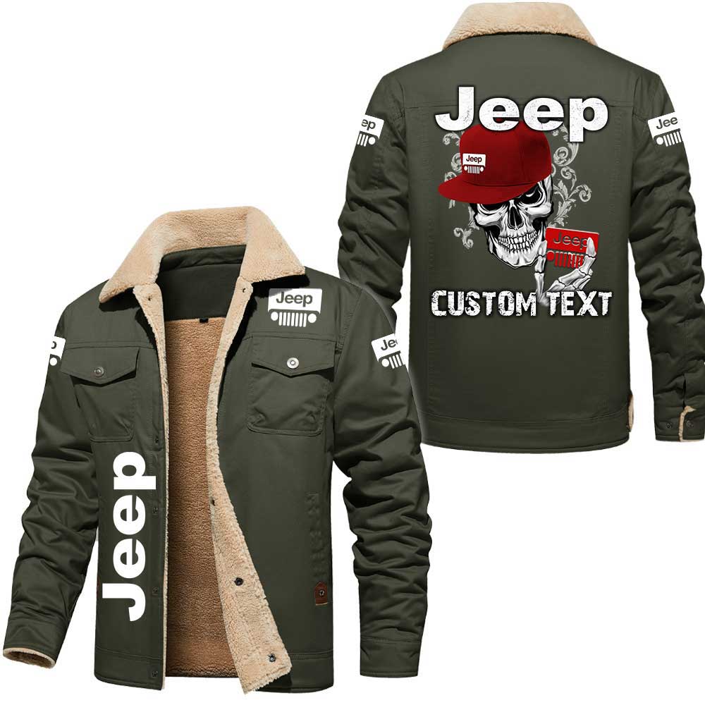 Jeep Skull Custom Name Cargo Fleece Lined Cotton Jacket