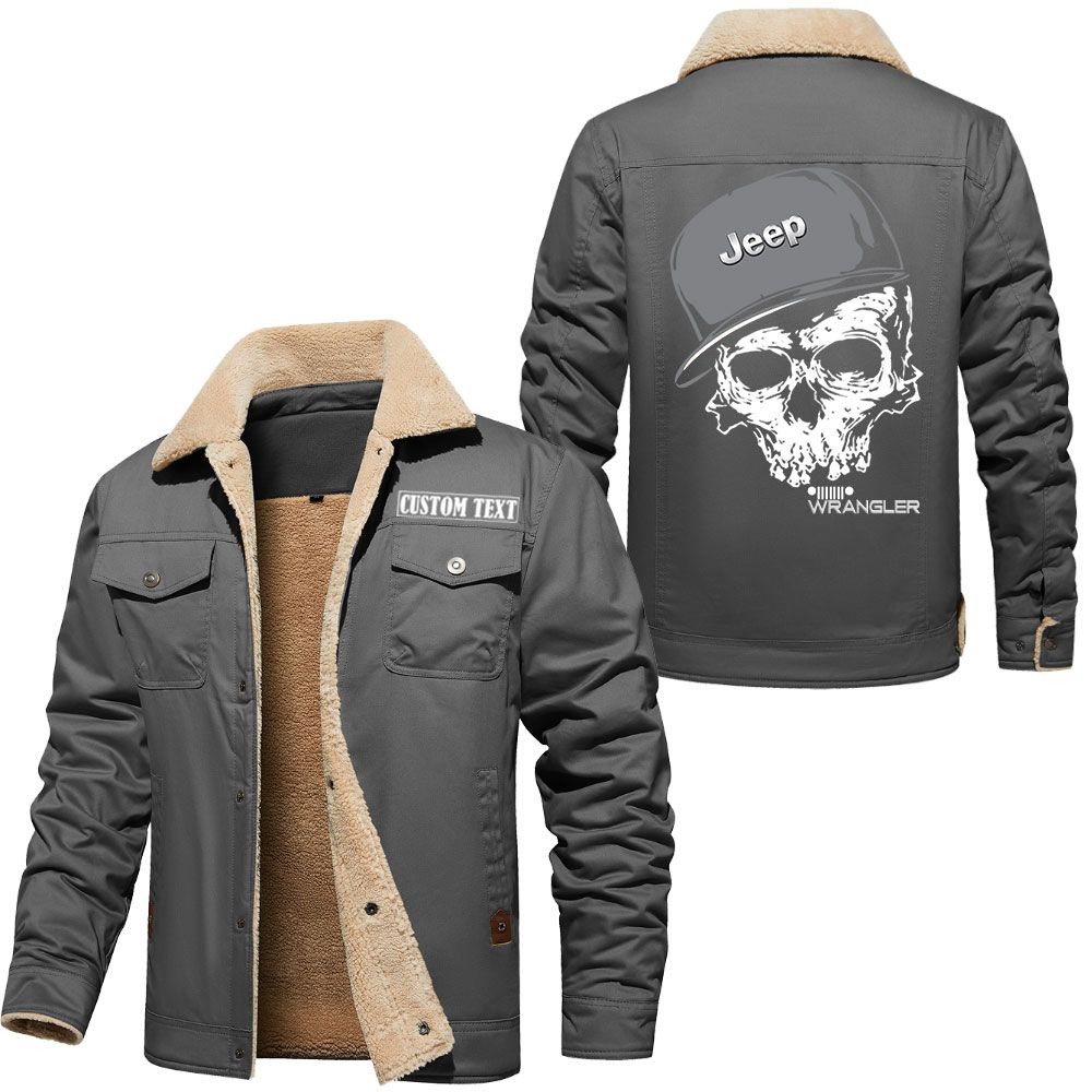 Jeep wrangler Logo Custom Name Cargo Fleece Lined Cotton Jacket Personalized Outerwear with Skull Design