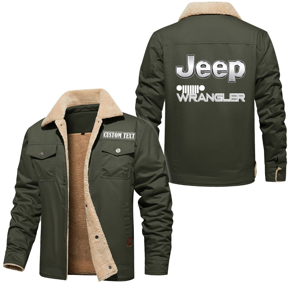 Jeep wrangler Logo Custom Name Cargo Fleece Lined Cotton Jacket Stylish Warm Personalized Outerwear