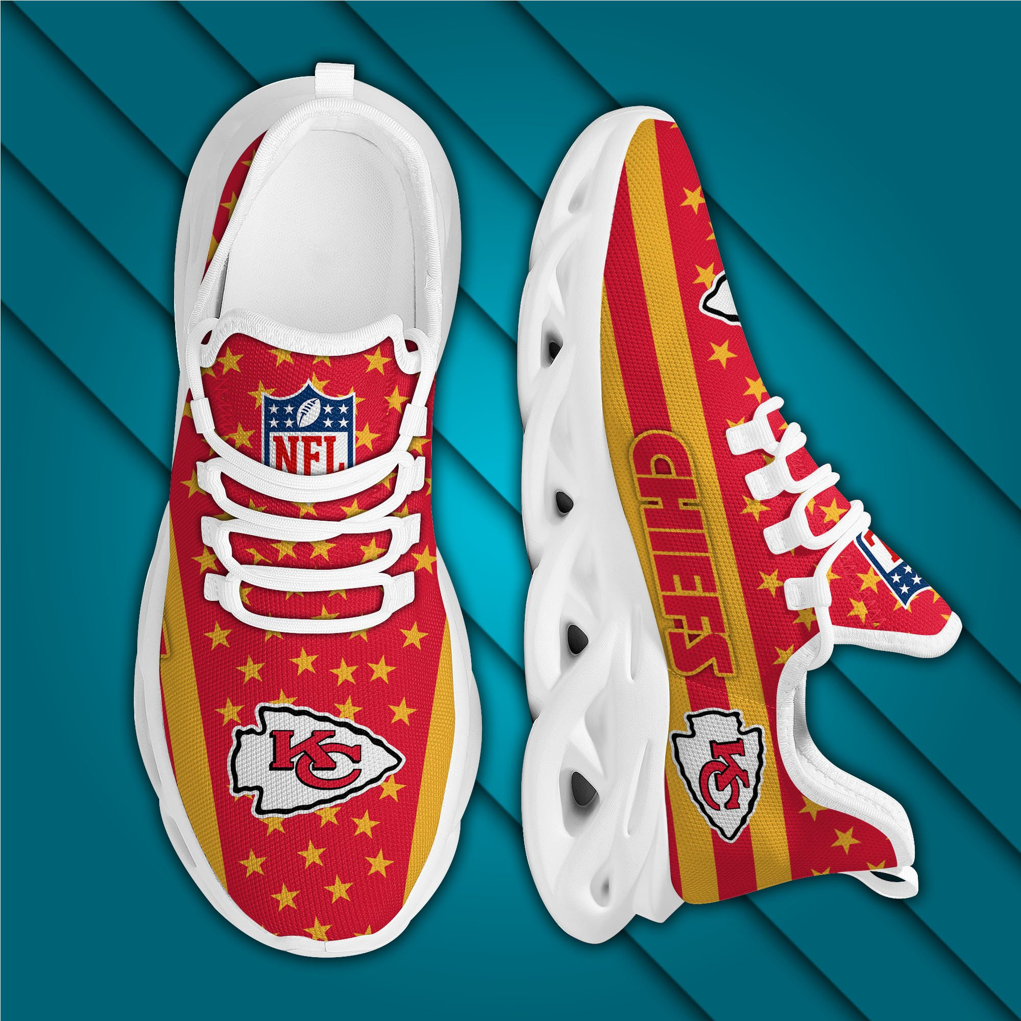 Kansas City Chiefs NFL Max Soul Shoes Sneakers Printed White And Black Sole For Men And Women
