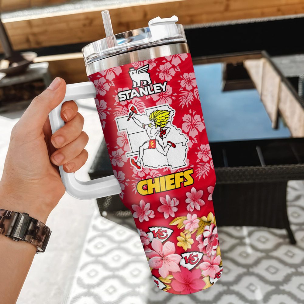 Kansas City Chiefs Nfl Tropical Floral Custom Stanley Quencher 40Oz Stainless Steel