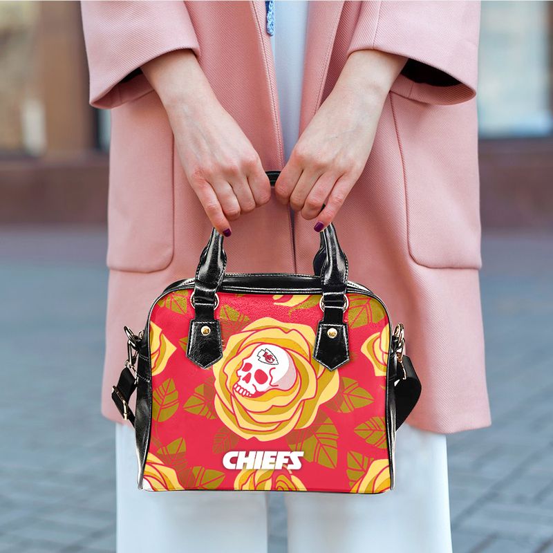Kansas City Chiefs Skull And Rose Pattern Limited Edition Lady Leather Handbag