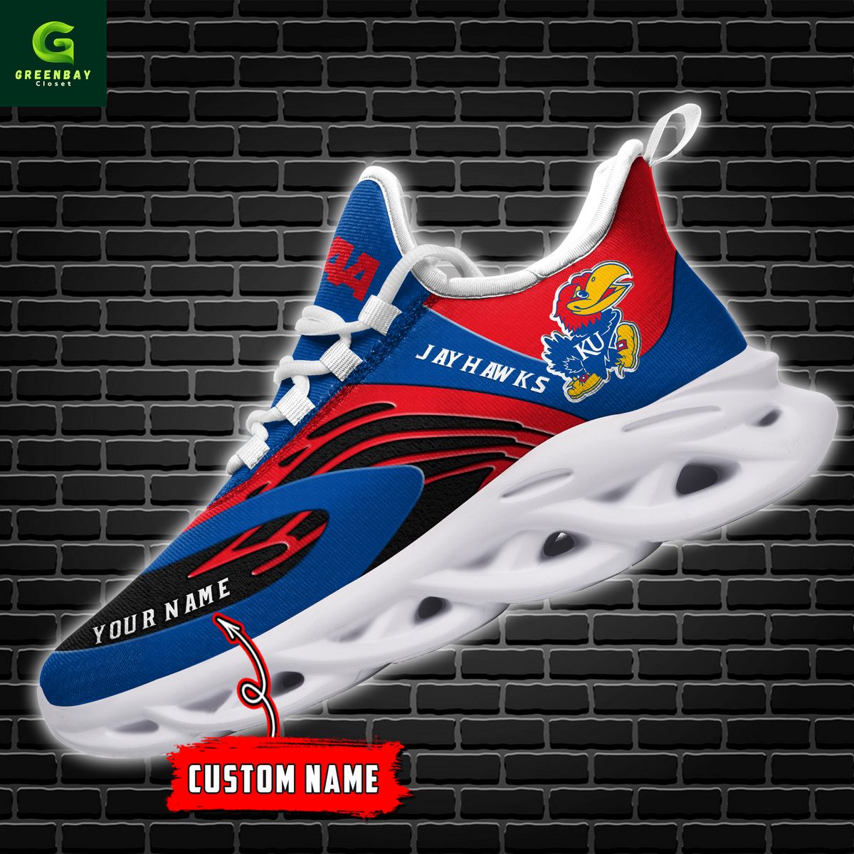 Kansas Jayhawks Max Soul Shoes Sneakers Printed White And Black Sole For Men And Women