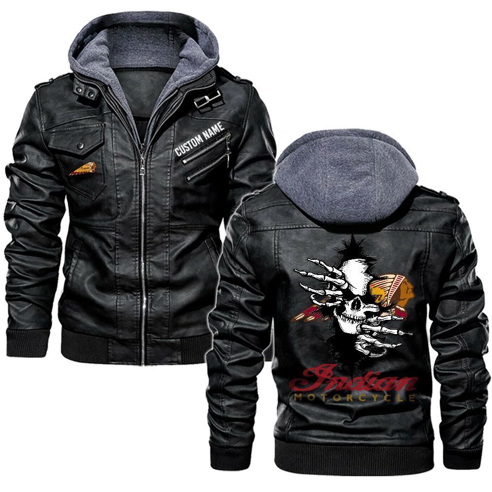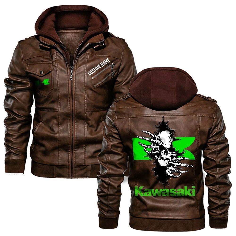 Kawasaki Custom Name Skull Biker Car Driver Personalized Hooded Leather Jacket For Men Women