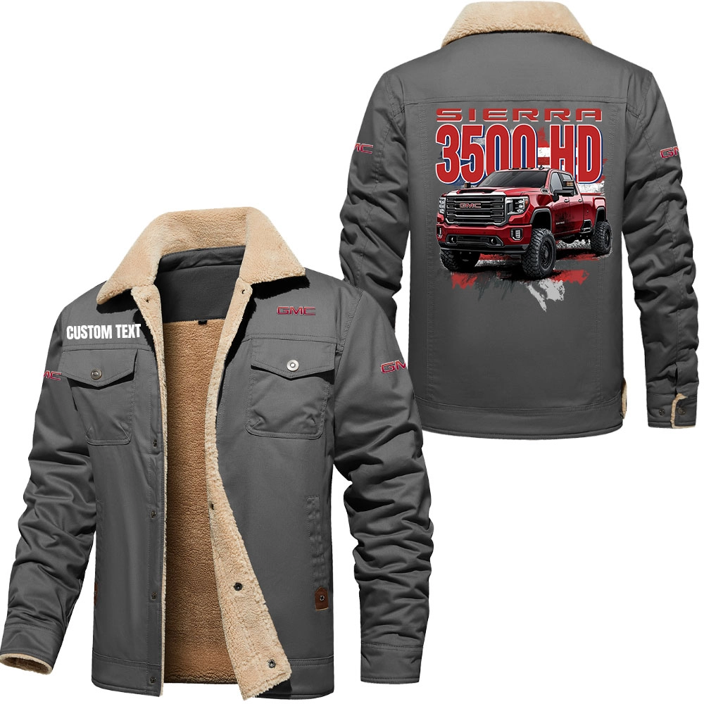 Kawasaki Heavy Industries Golden Logo Custom Cargo Fleece Lined Cotton Jacket Dark Grey