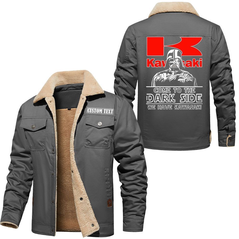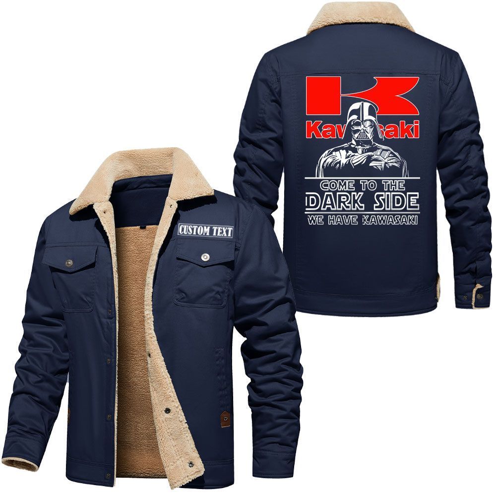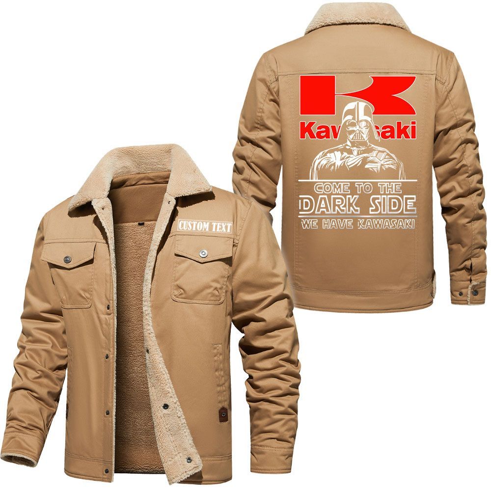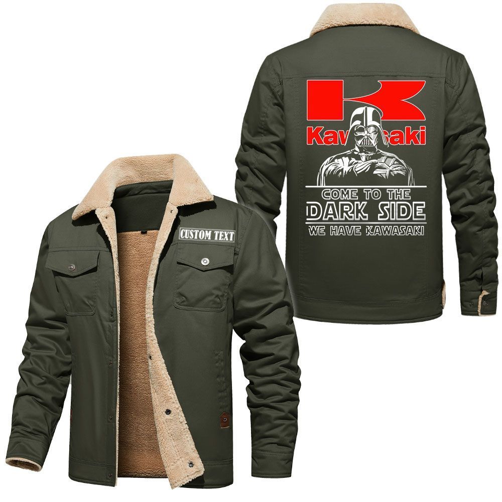 Kawasaki Heavy Industries Logo Custom Name Cargo Fleece Lined Cotton Jacket Personalized Outerwear with Dark Side Star Wars Design