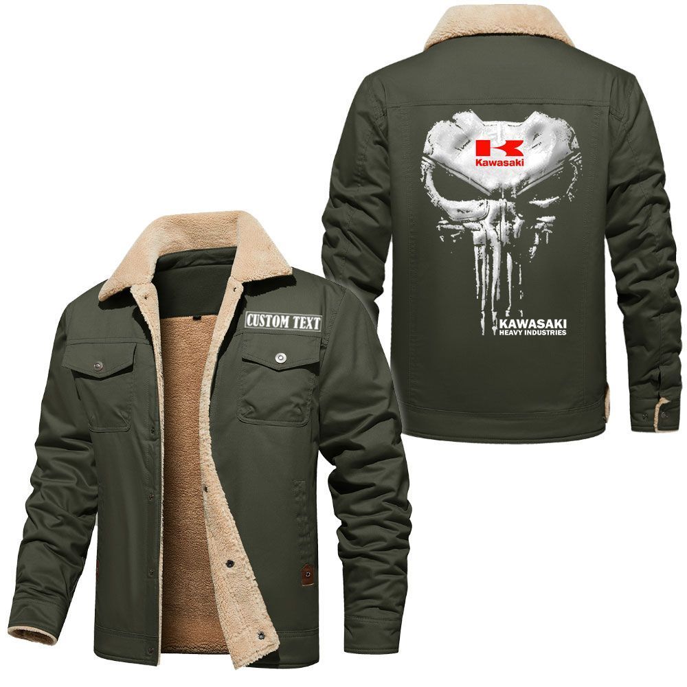 Kawasaki Heavy Industries Logo Custom Name Cargo Fleece Lined Cotton Jacket Personalized Outerwear with Punisher Skull Design