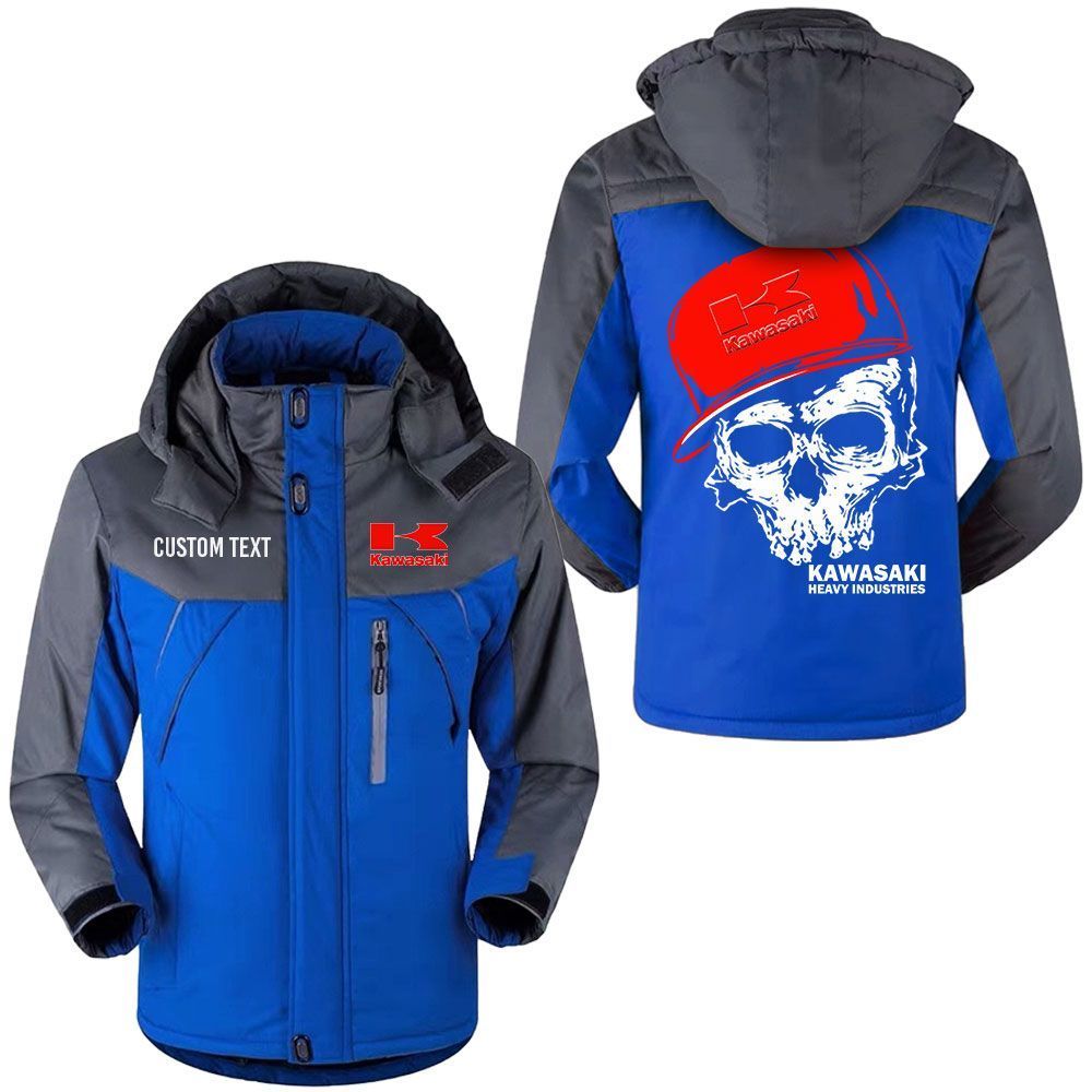 Kawasaki Heavy Industries Logo Custom Name Skull Design Hooded Windbreaker Ski Jacket