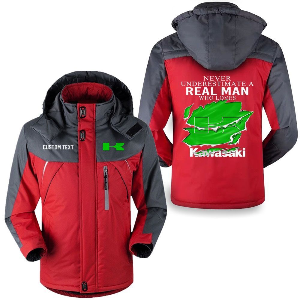 Kawasaki Logo Custom Name A Real Man Who Loves Hooded Windbreaker Ski Jacket