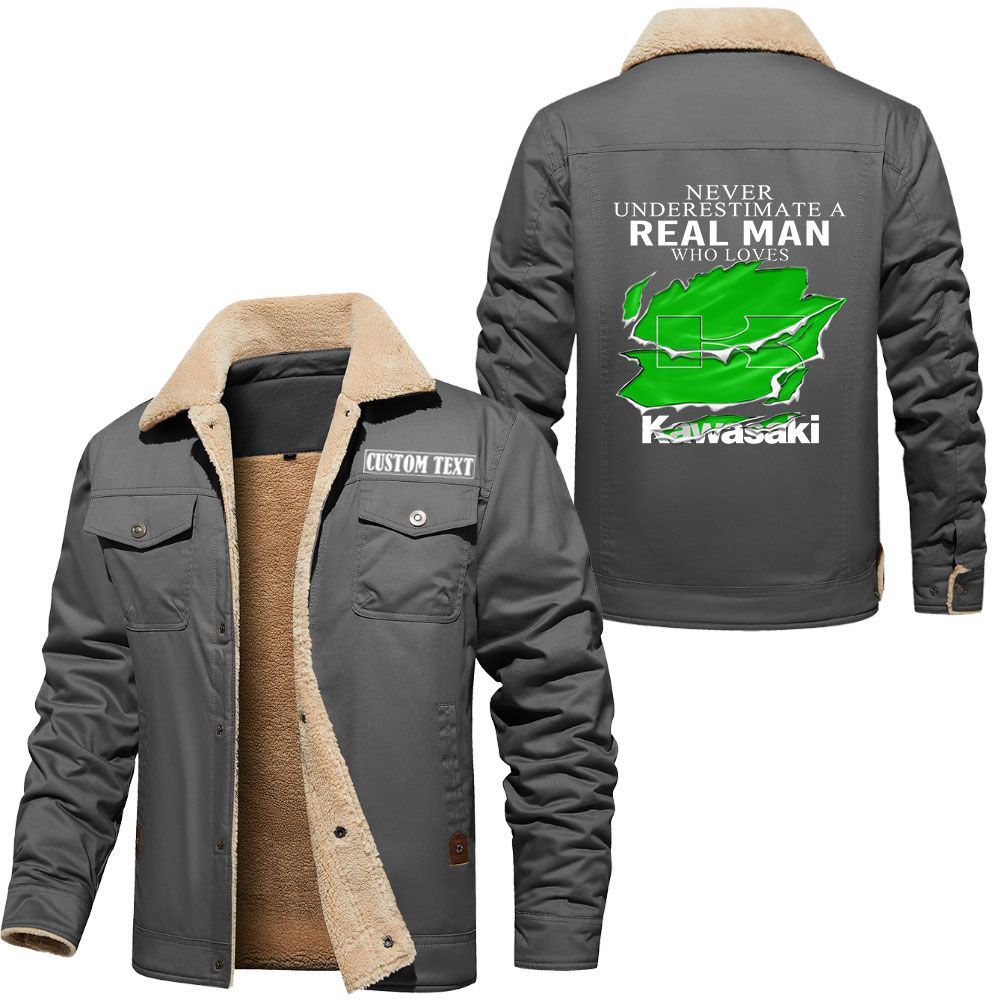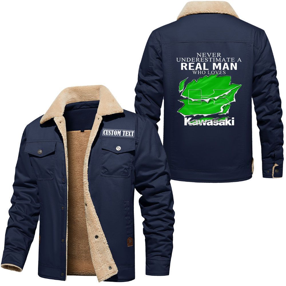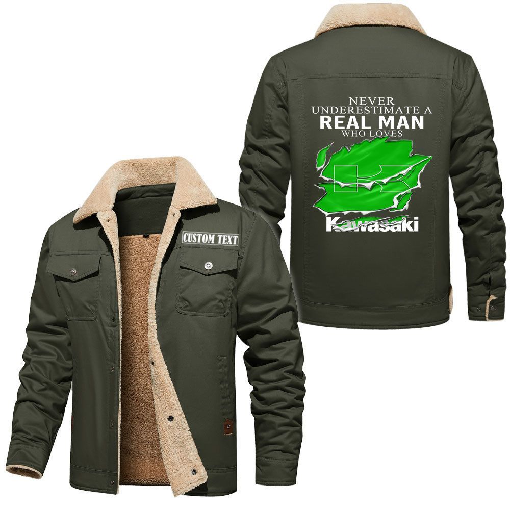 Kawasaki Logo Custom Name Cargo Fleece Lined Cotton Jacket A Real Man Who Loves Personalized Outerwear