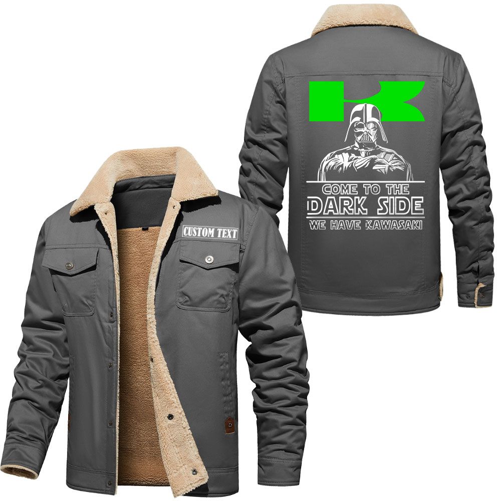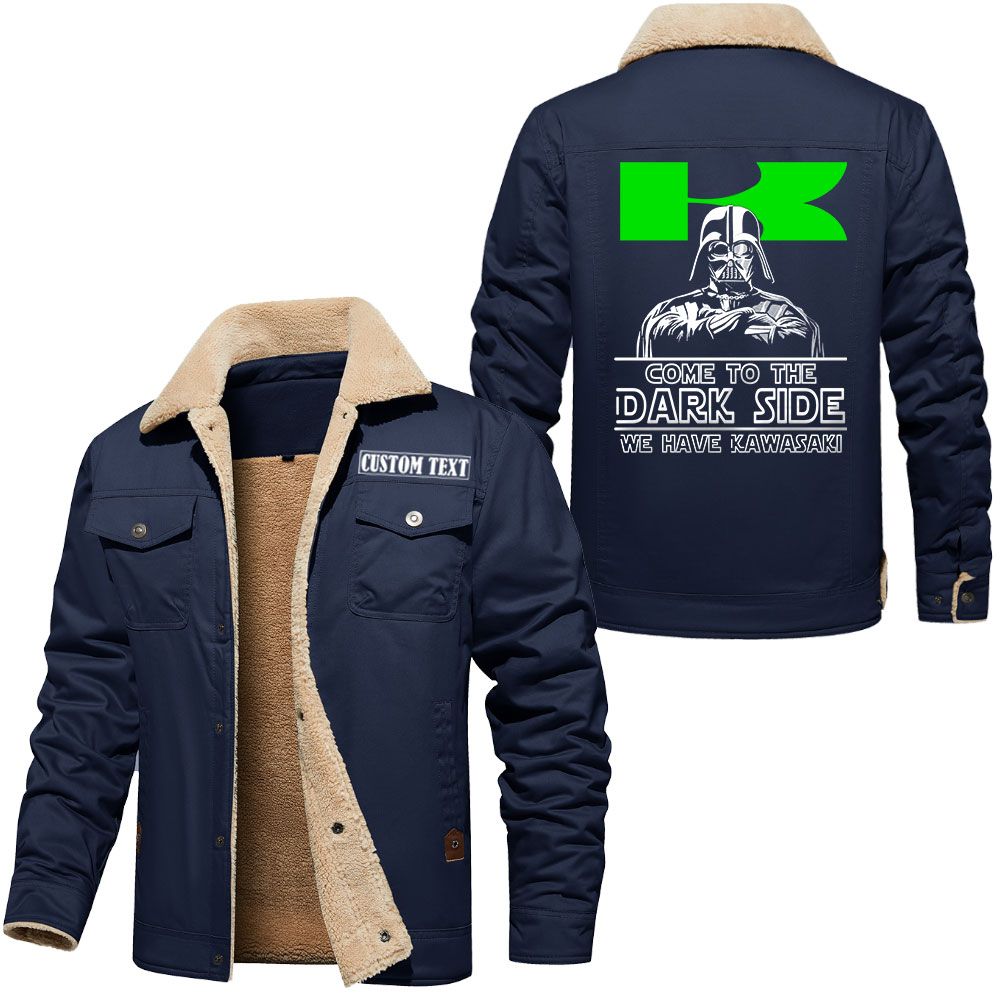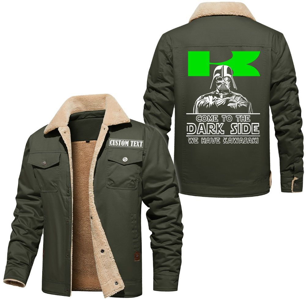 Kawasaki Logo Custom Name Cargo Fleece Lined Cotton Jacket Personalized Outerwear with Dark Side Star Wars Design