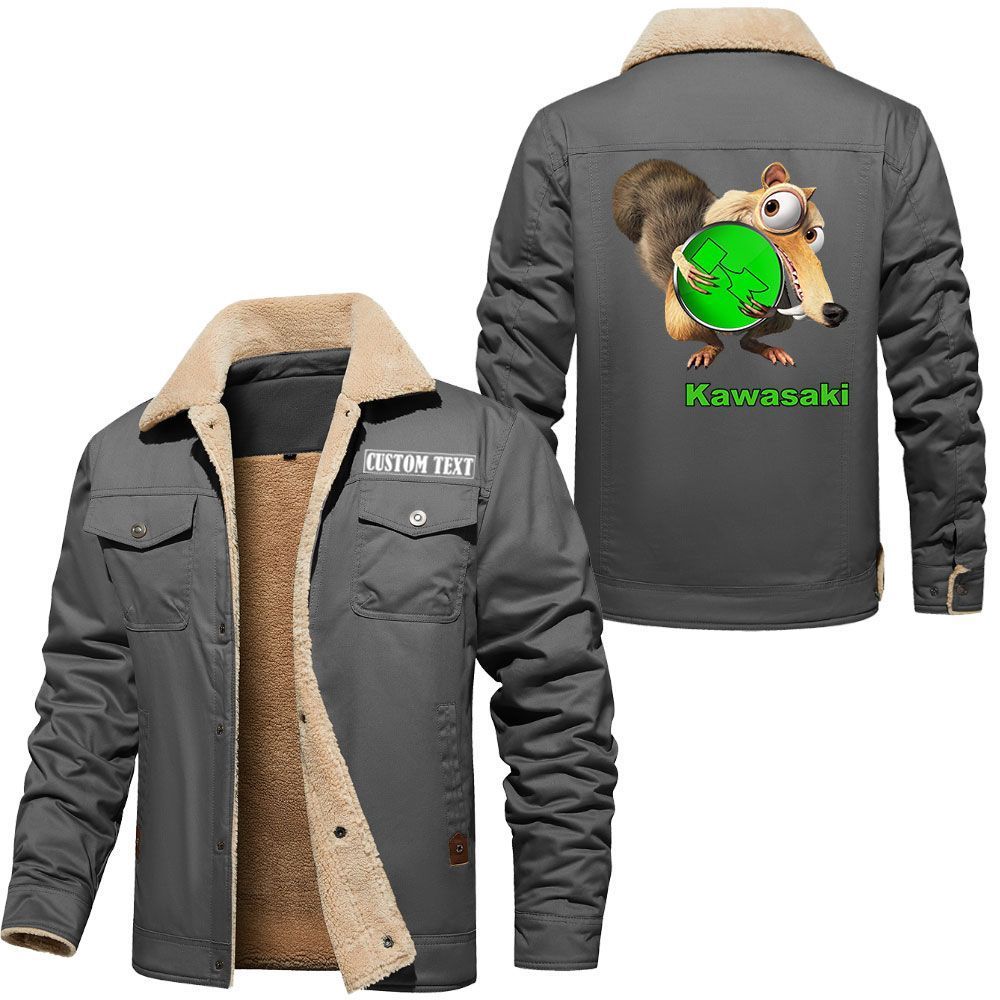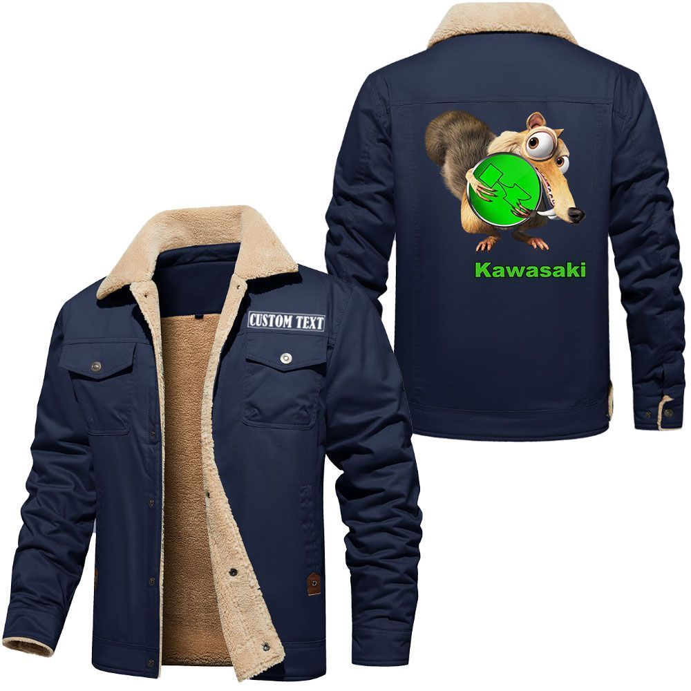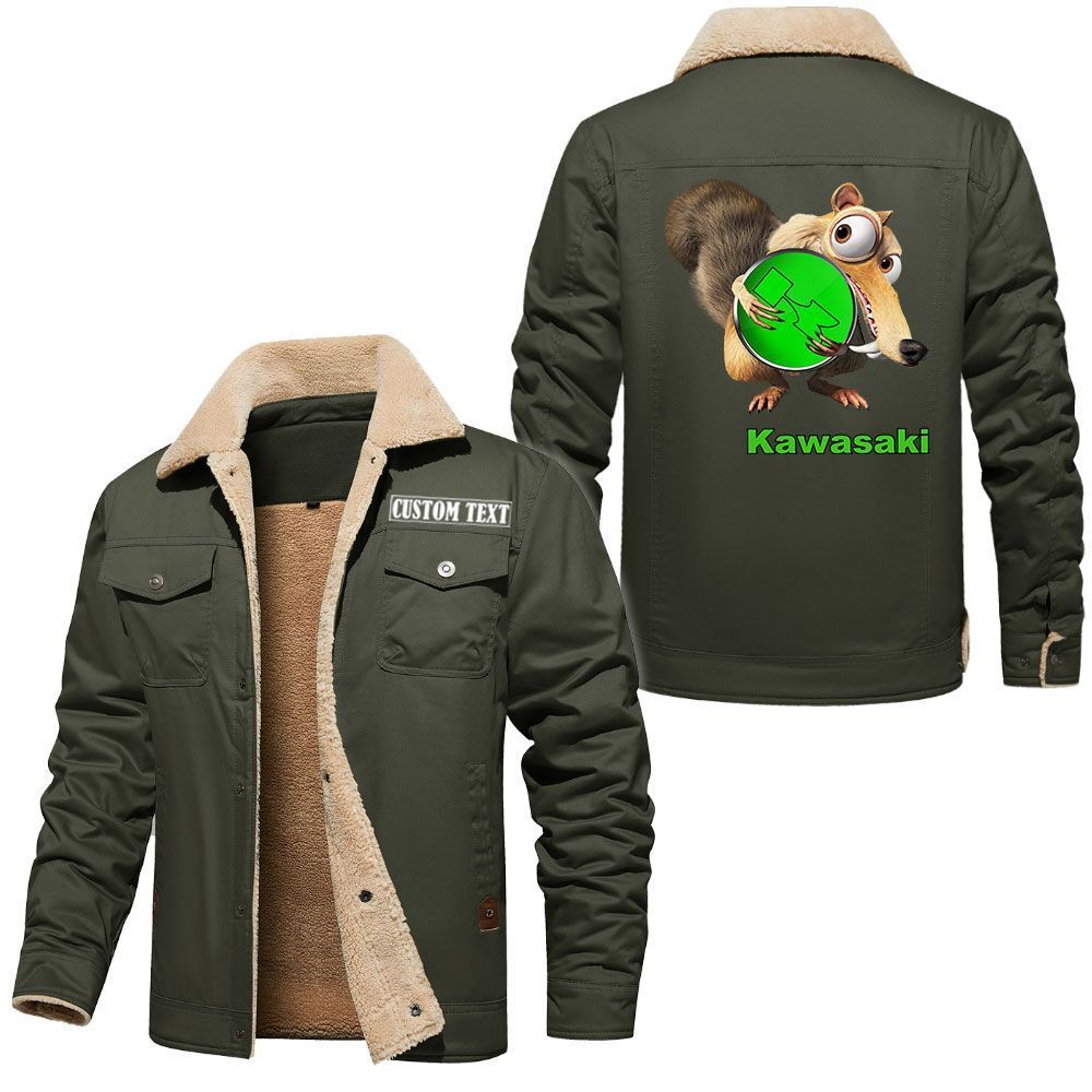 Kawasaki Logo Custom Name Cargo Fleece Lined Cotton Jacket Scrat Ice Age Design Personalized Outerwear