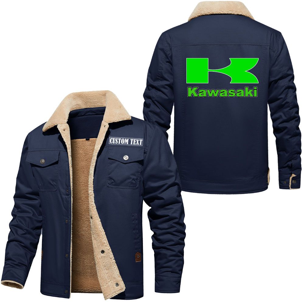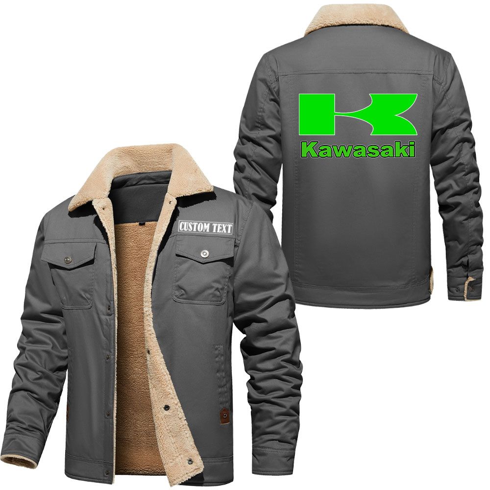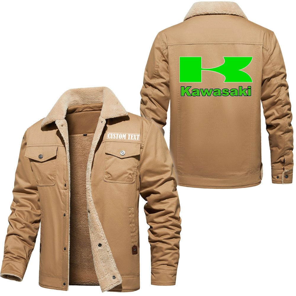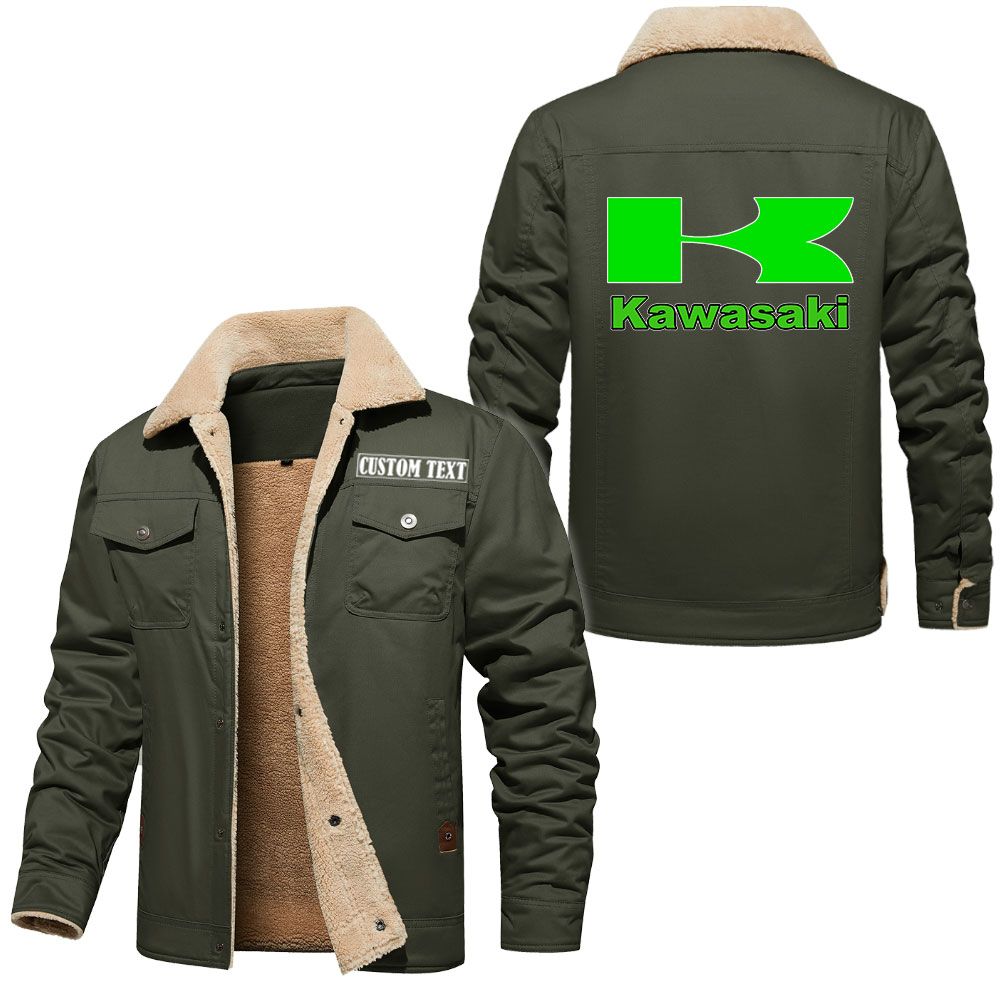 Kawasaki Logo Custom Name Cargo Fleece Lined Cotton Jacket Stylish Warm Personalized Outerwear