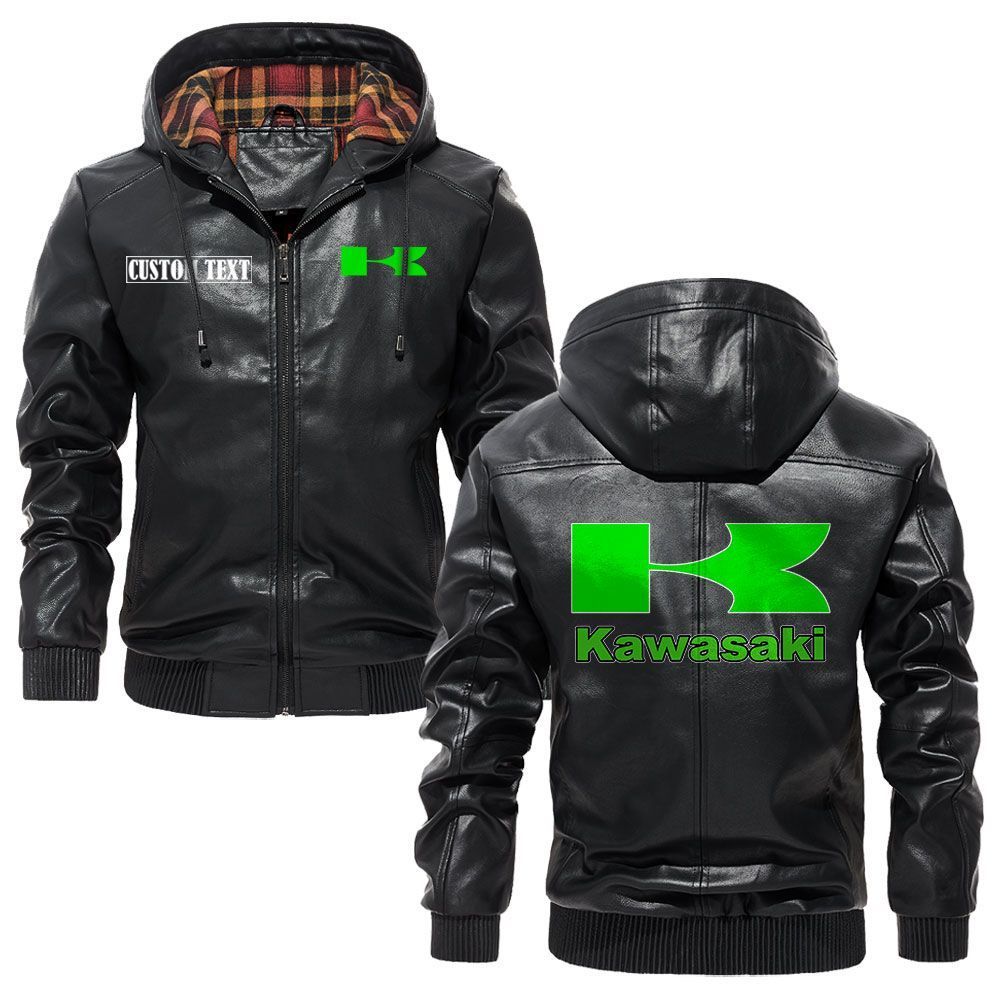 Kawasaki Logo Custom Name Leather Hoodie Jacket Comfortable Personalized Outerwear