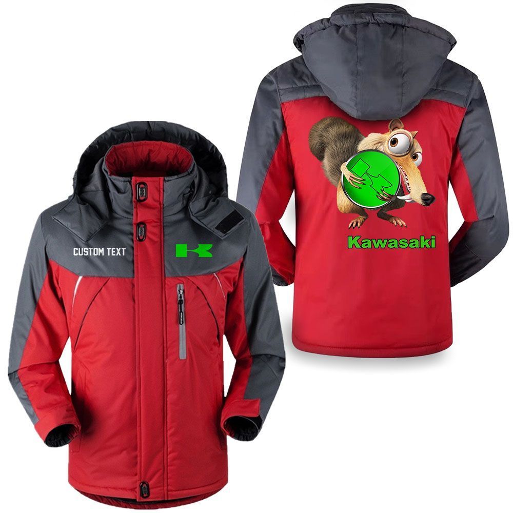 Kawasaki Logo Custom Name Scrat Ice Age Hooded Windbreaker Ski Jacket