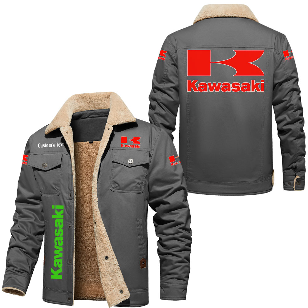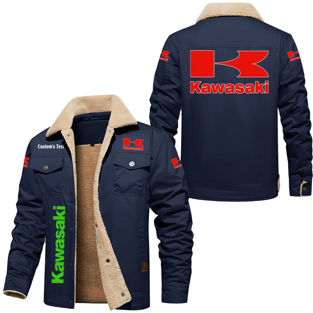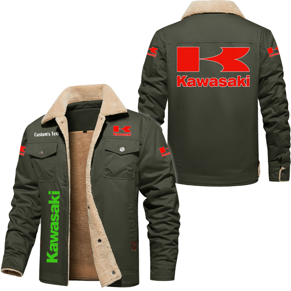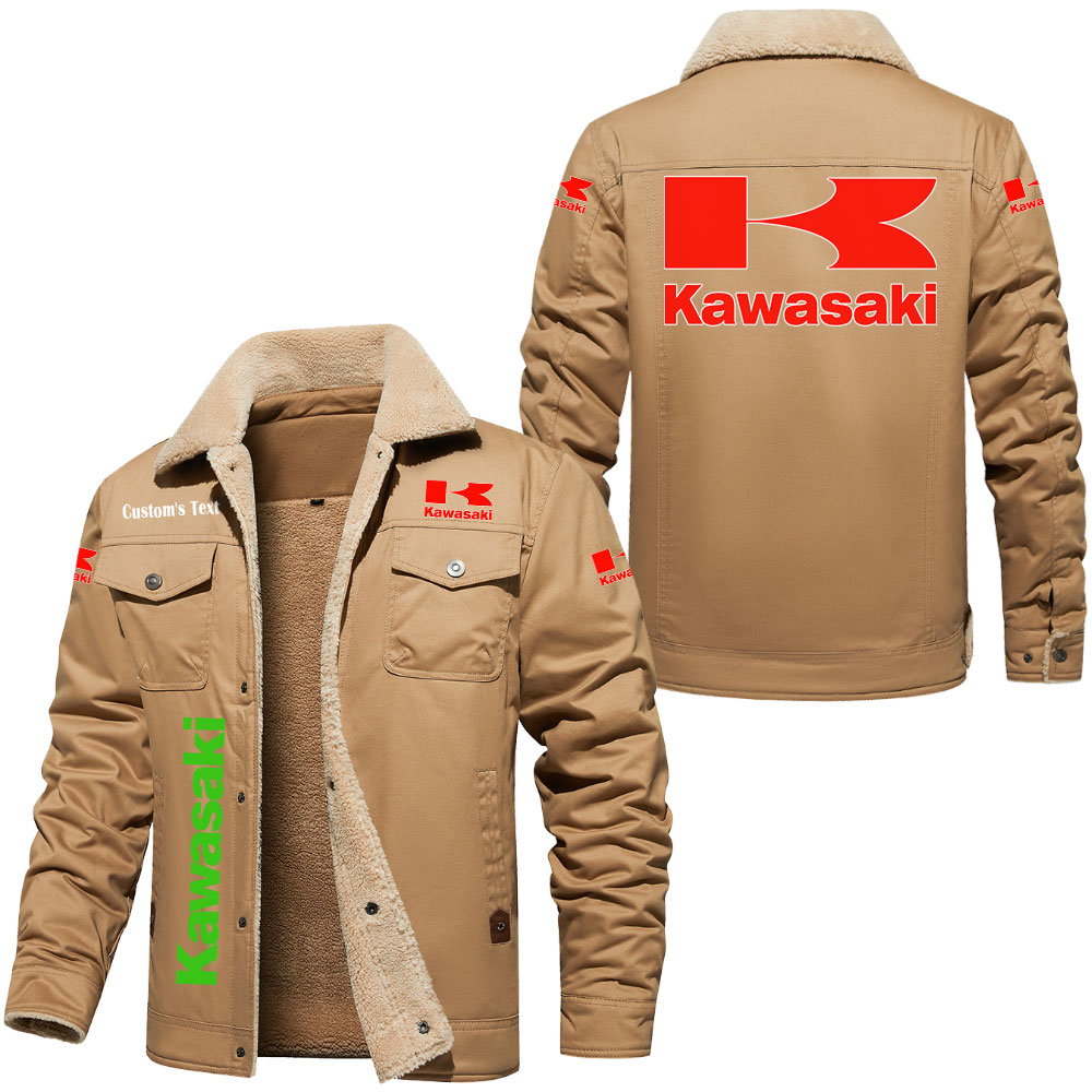 Kawasaki Logo Custom Text Cargo Fleece Lined Cotton Jacket